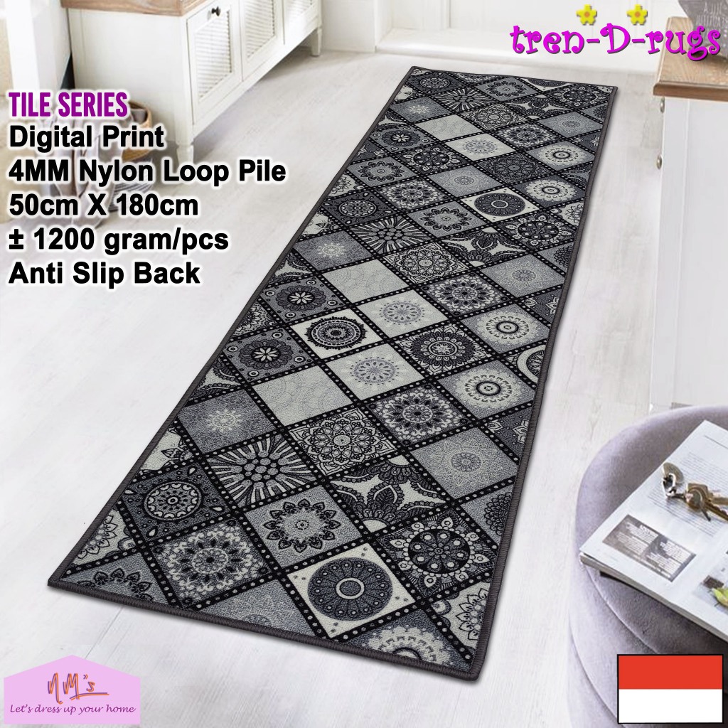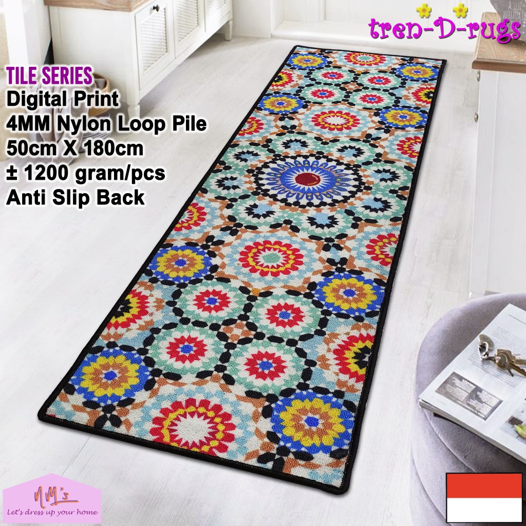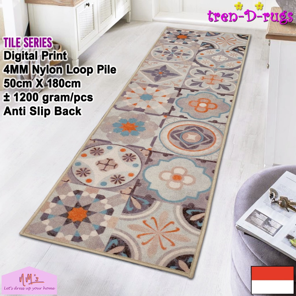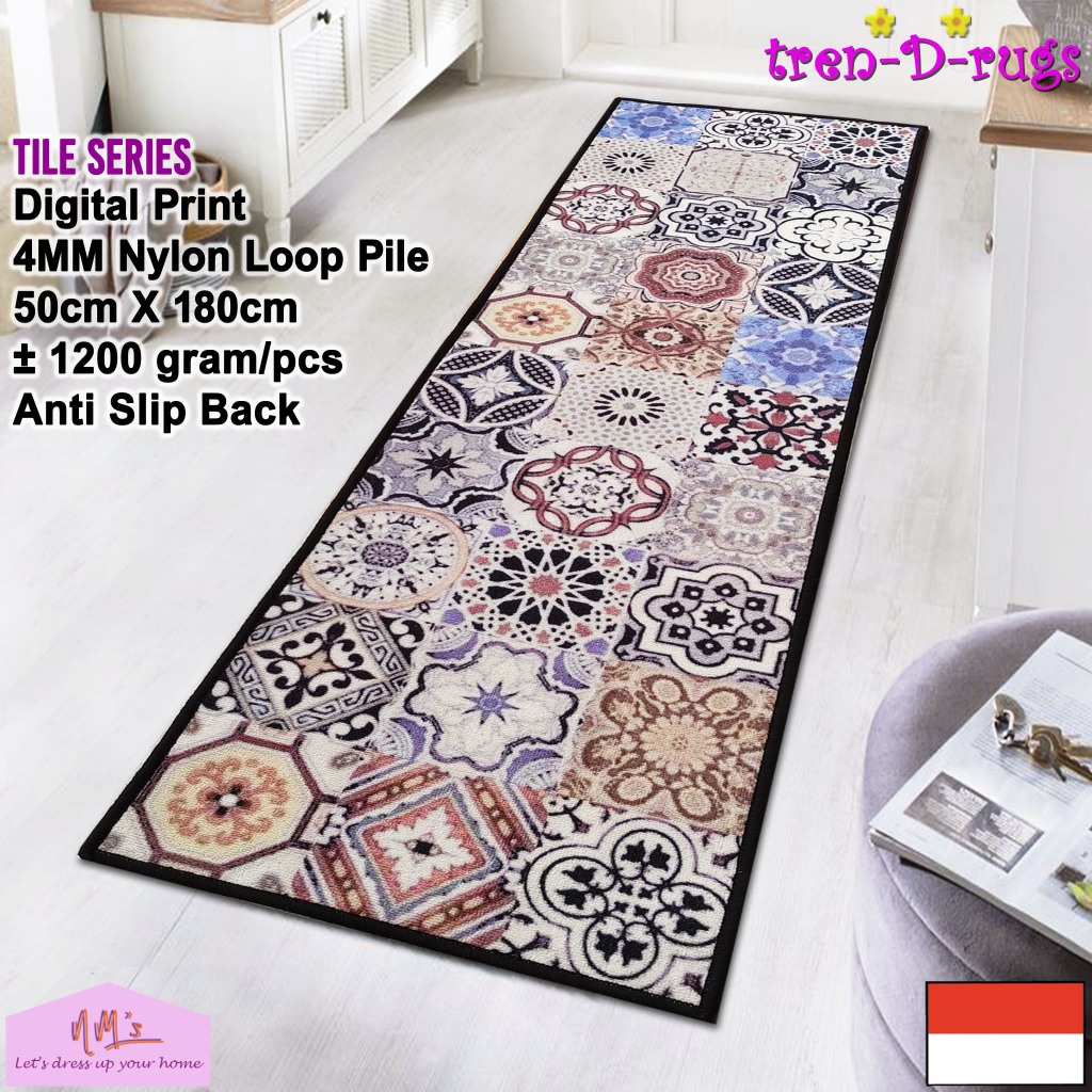 Tren-D-rugs - Keset kaki digital print alas lantai kamar tidur runner dapur lorong panjang kitchen mat anti slip murah 50 cm x 180 cm - NMs