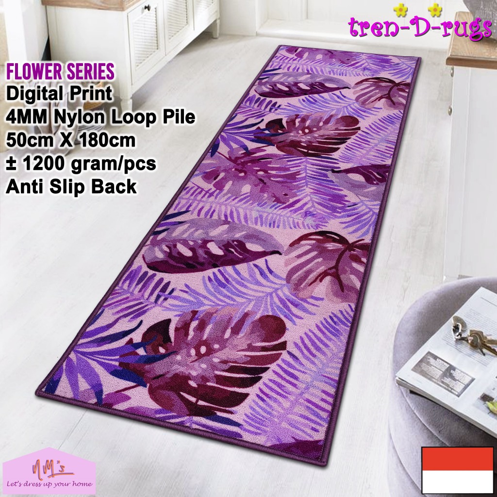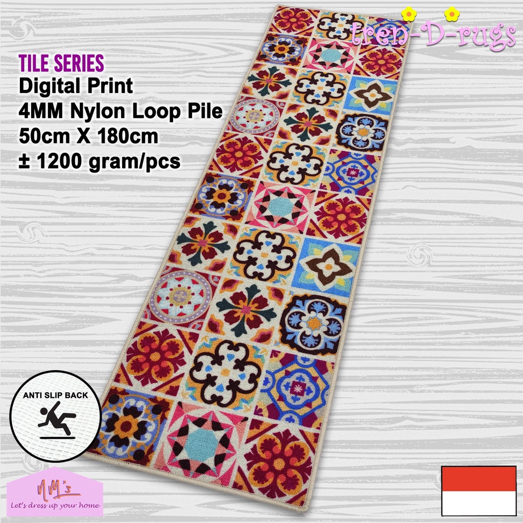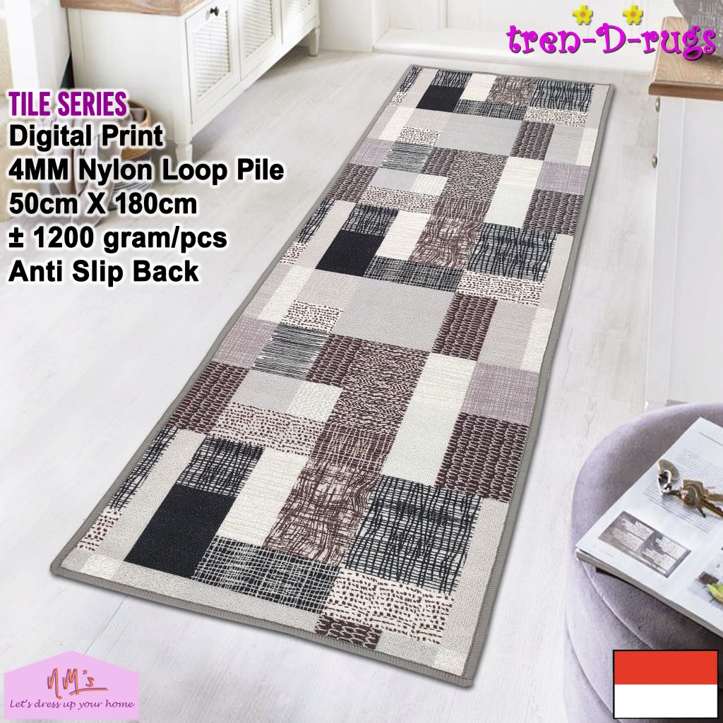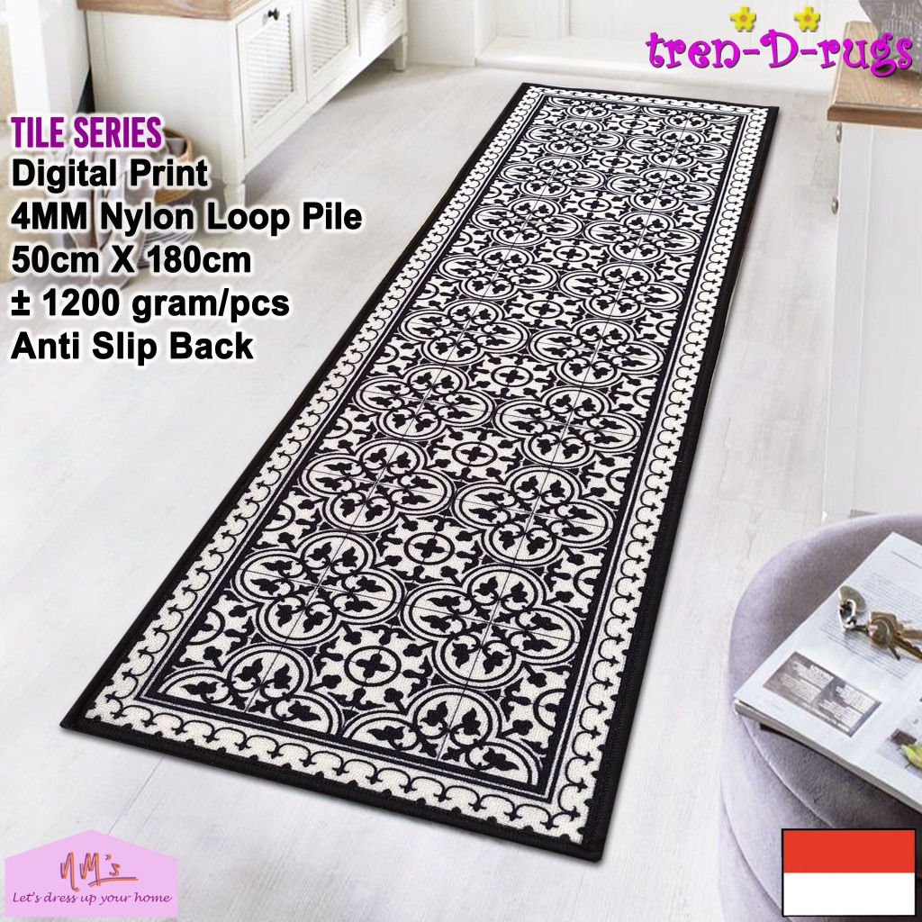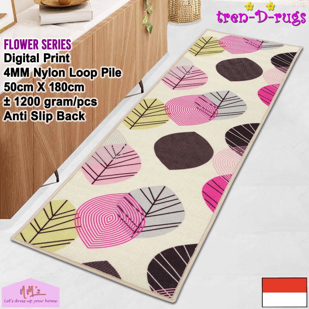 Tren-D-rugs - Keset kaki digital print alas lantai kamar tidur runner dapur lorong panjang kitchen mat anti slip murah 50 cm x 180 cm - NMs