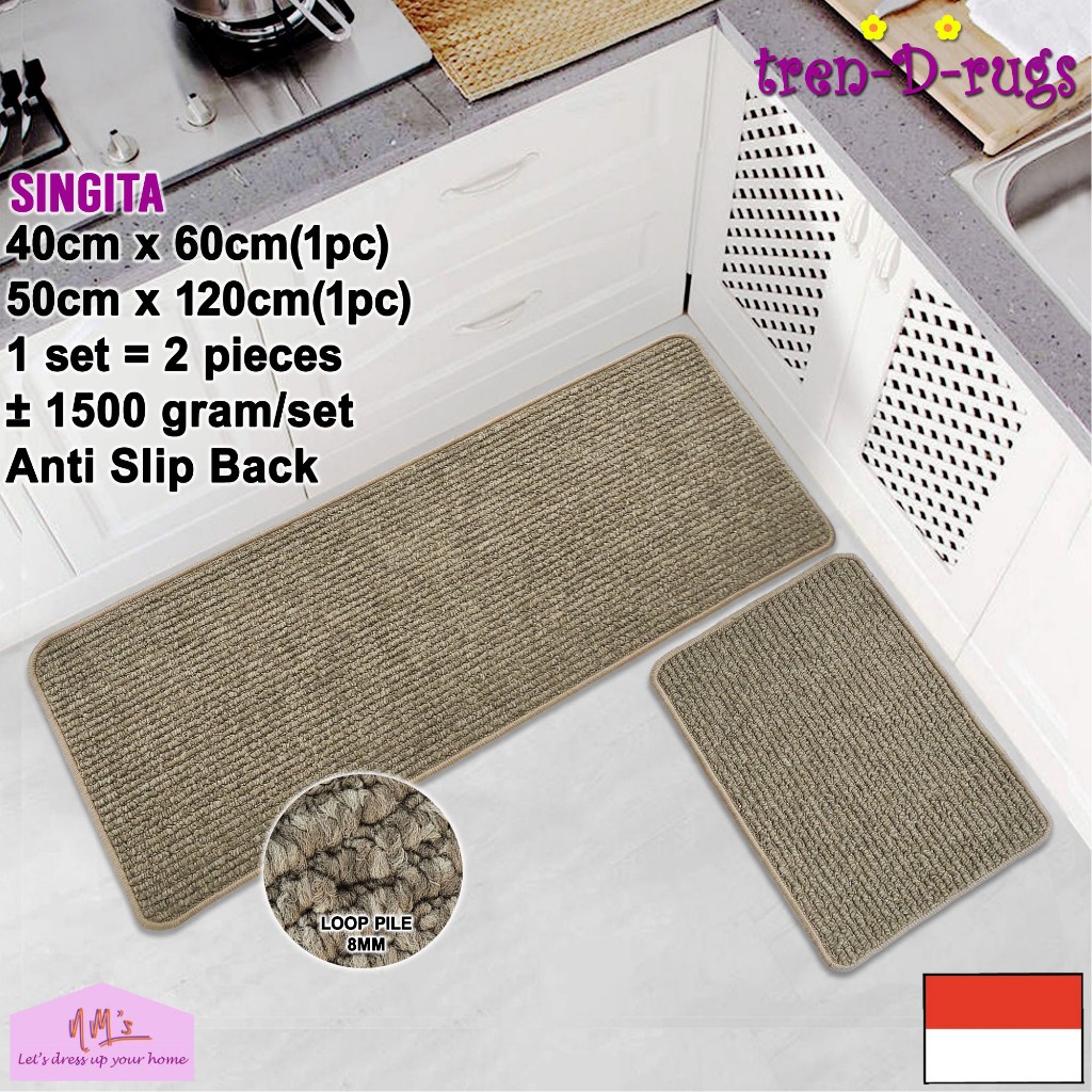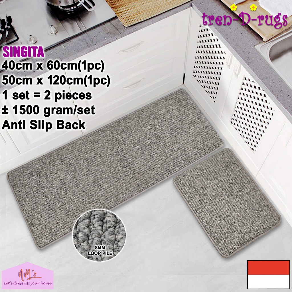 Tren-D-rugs Keset kaki polos salur dapur panjang runner lorong alas lantai ruang tidur anti slip 2pcs - NMs
