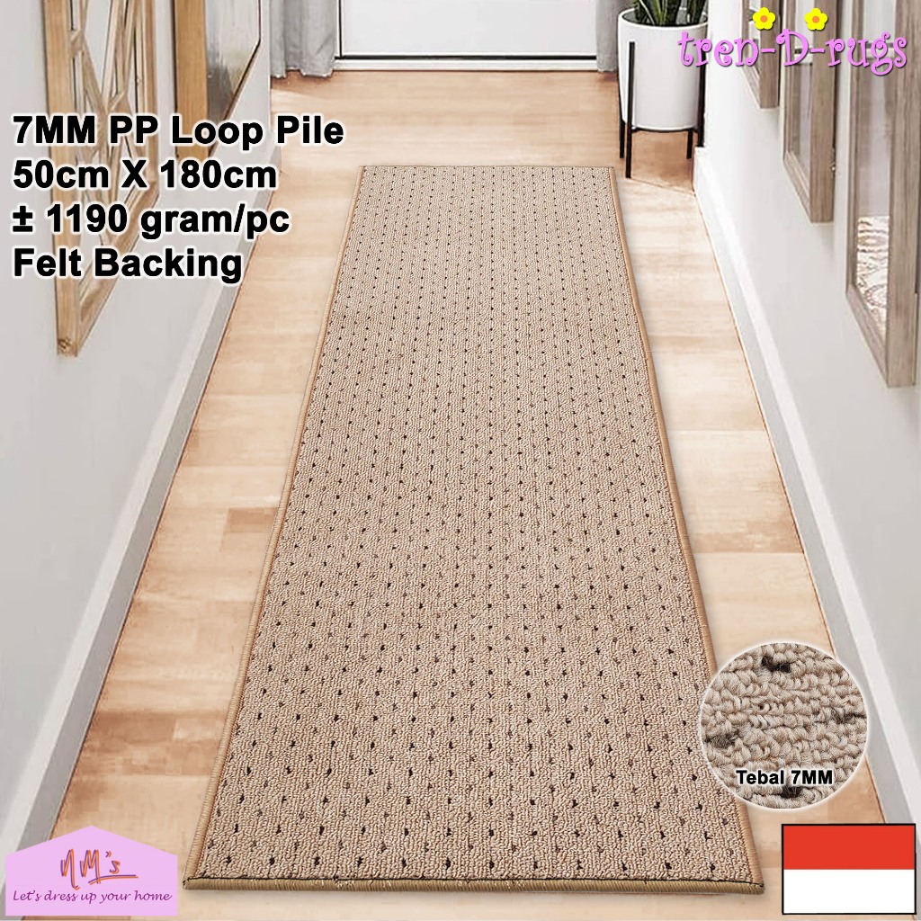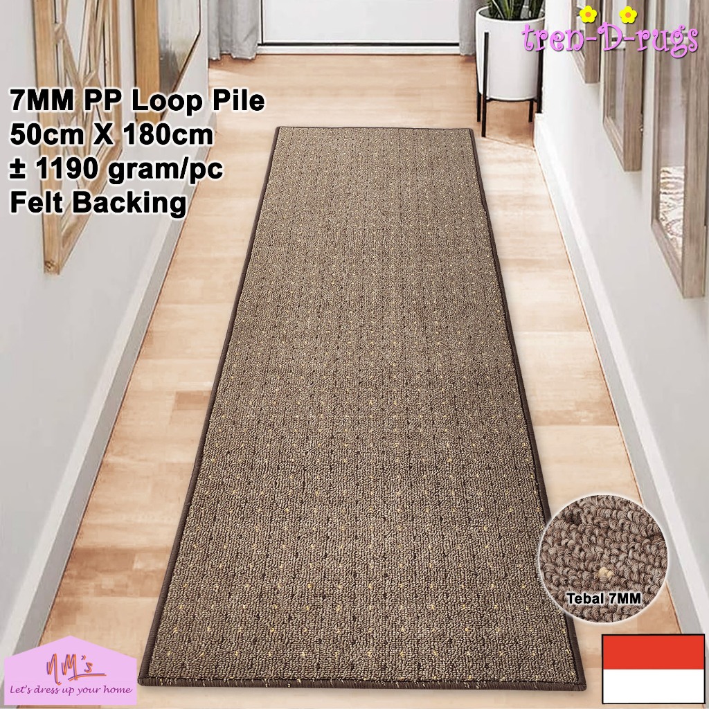 Keset kaki lorong panjang runner alas kamar tidur ruang tamu mandi dengan felt backing 50 cm x 180 cm - NMs