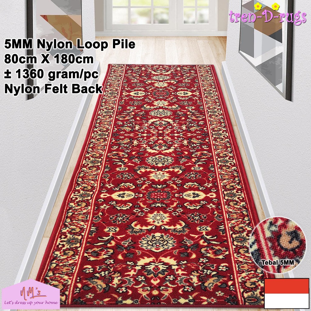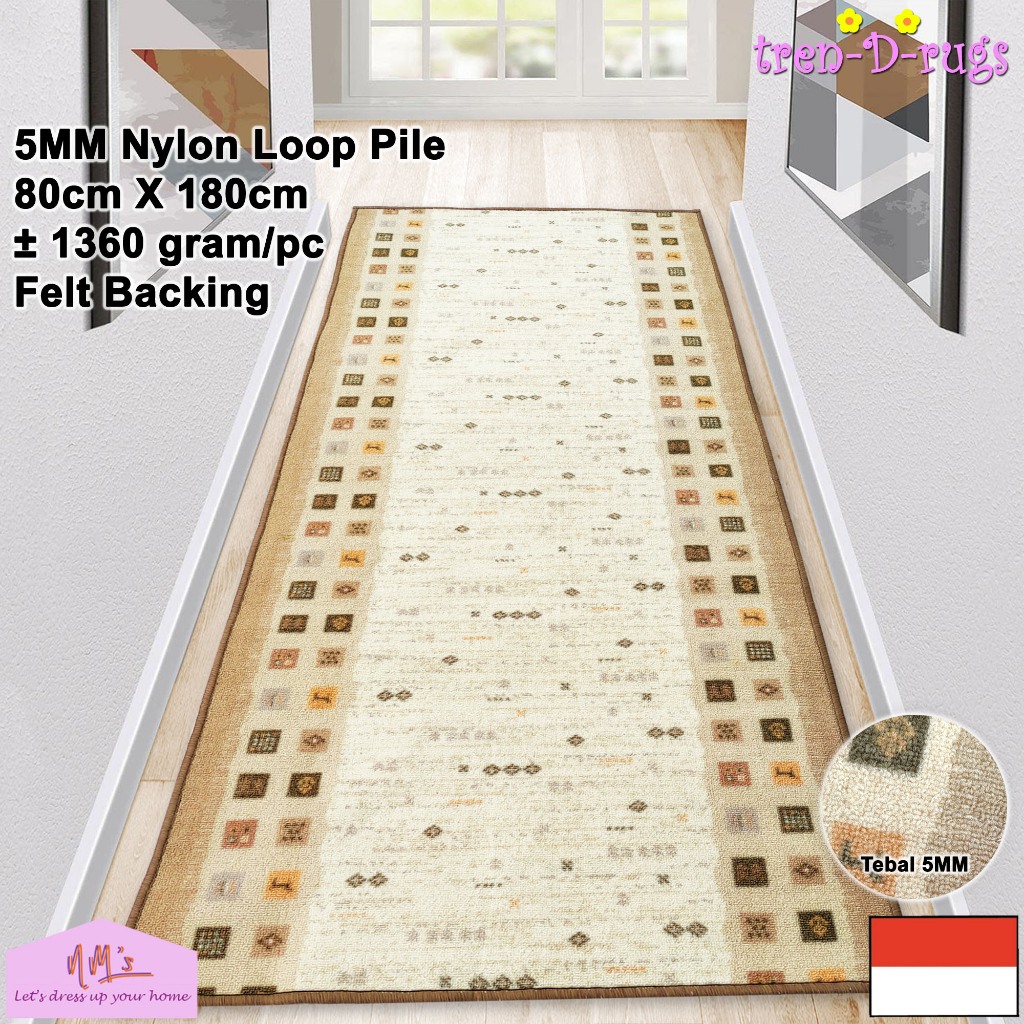 Karpet lorong panjang koridor runner alas kamar tidur ruang tamu mandi dengan felt backing 80 cm x 180 cm - NMs