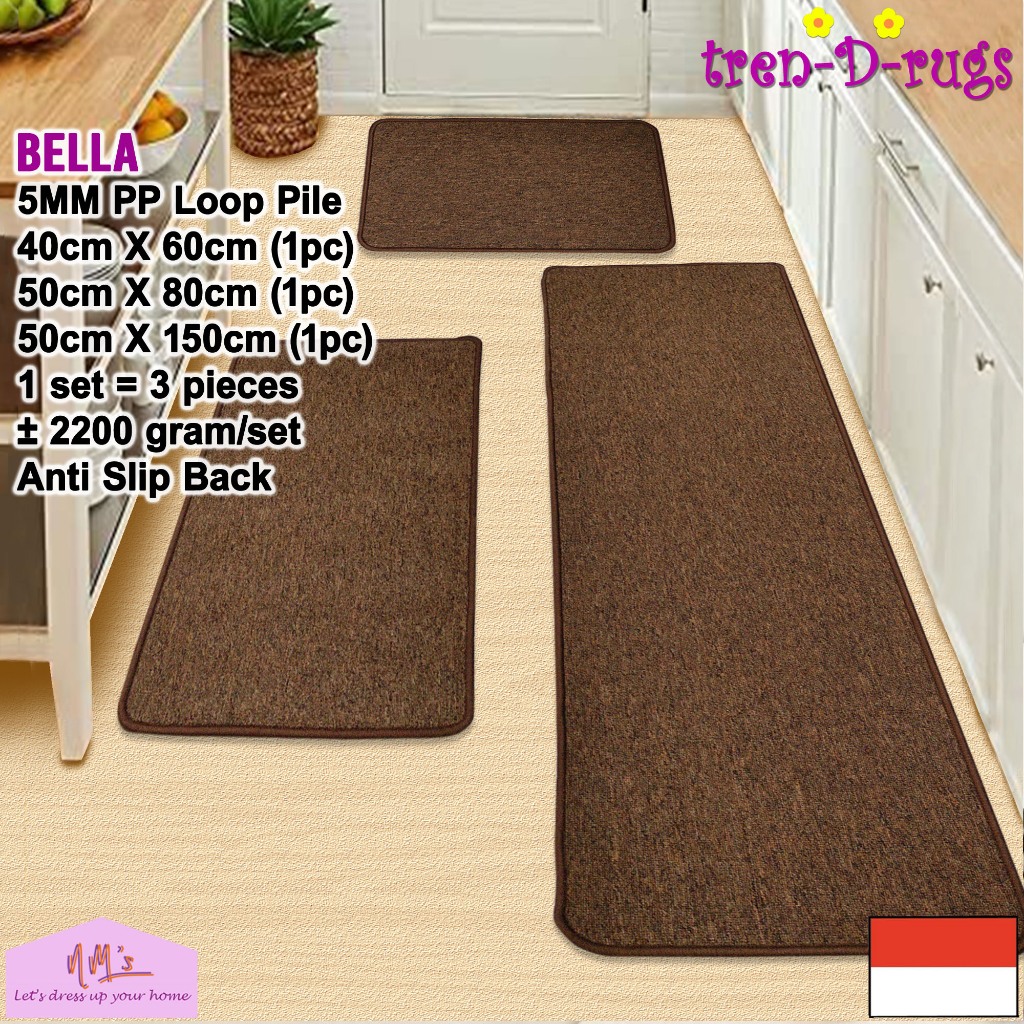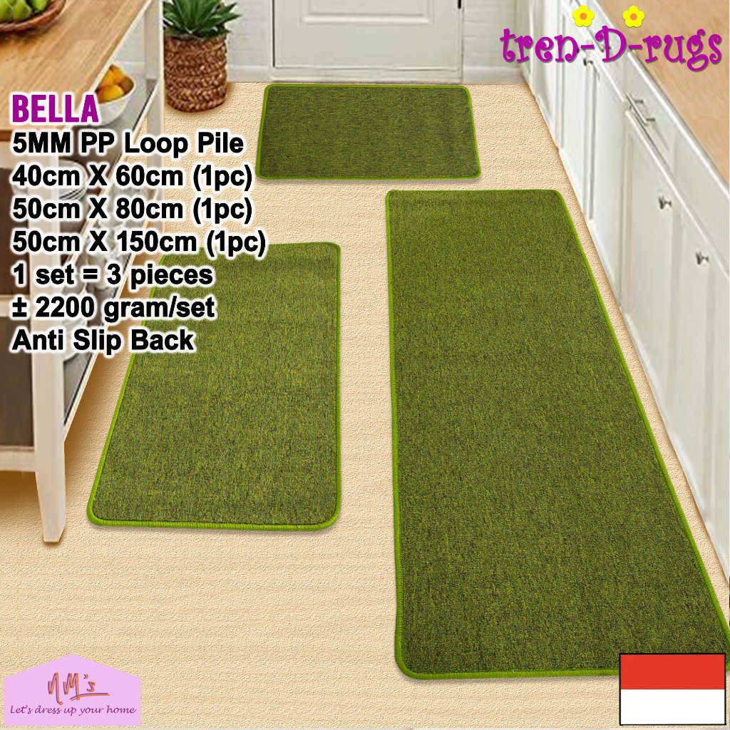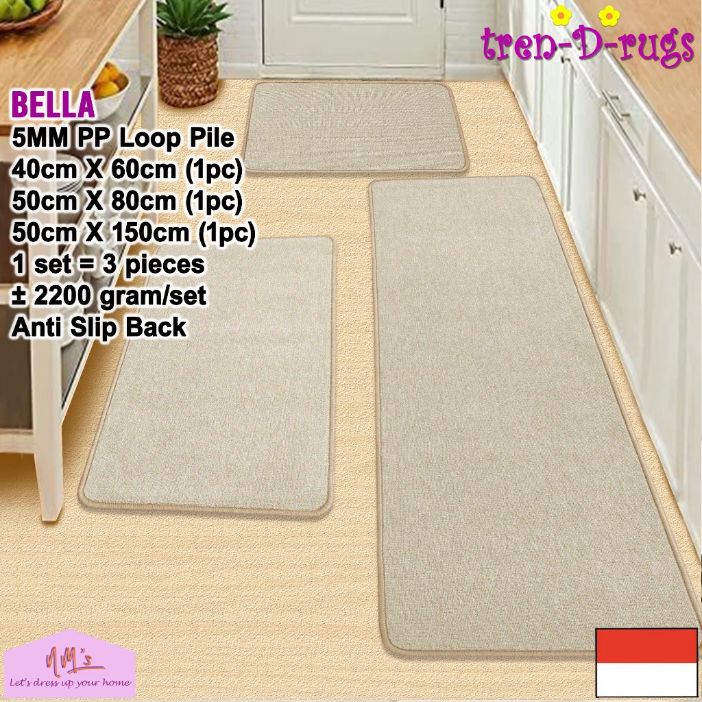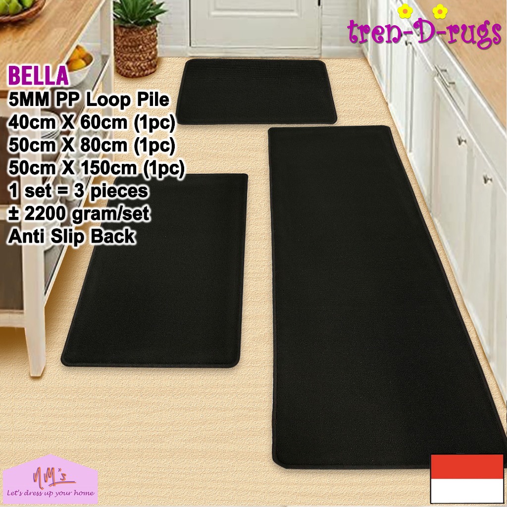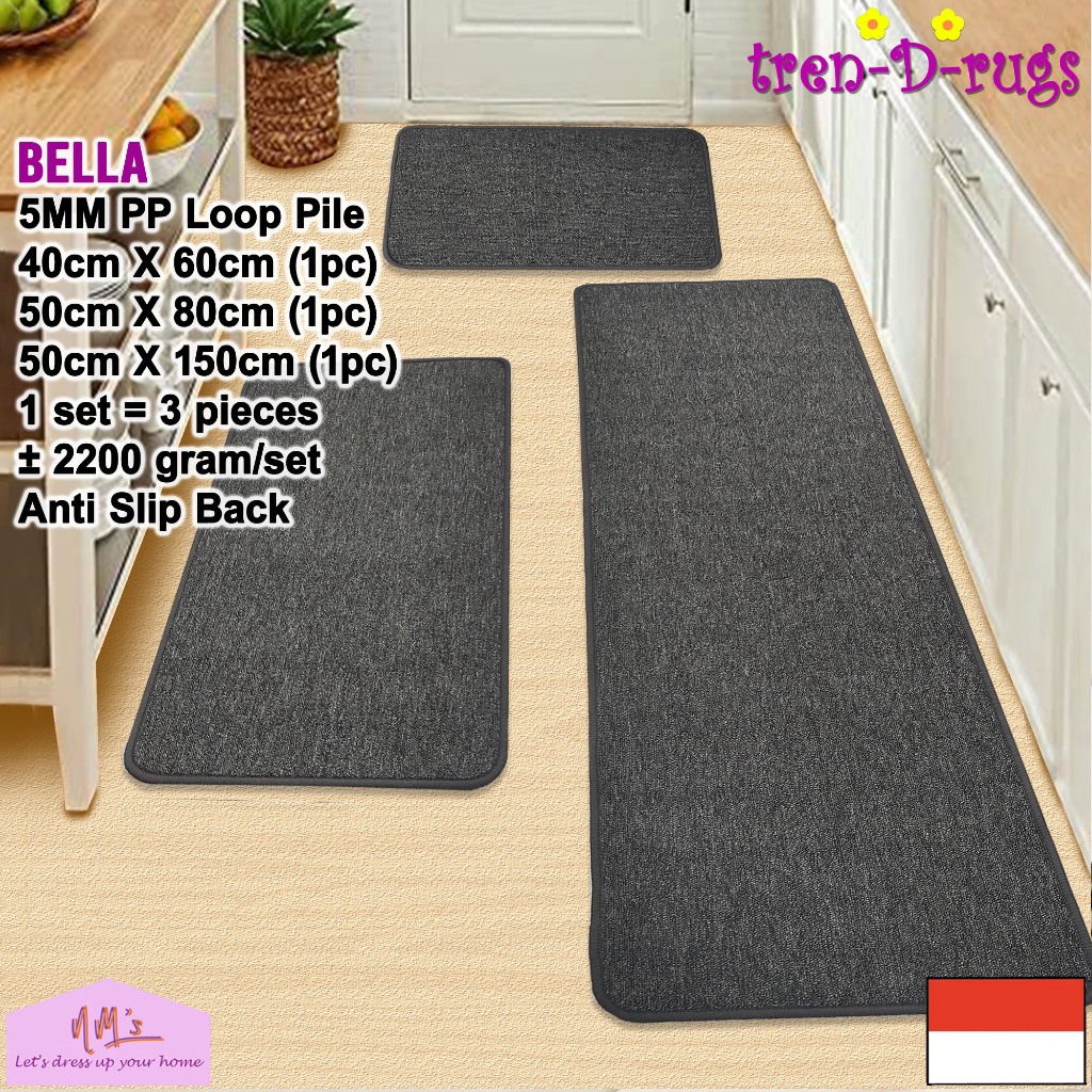 Tren-D-rugs Keset Kaki polos lantai dapur panjang lorong runner kitchen mat anti slip 1 set isi 3pcs - NMs