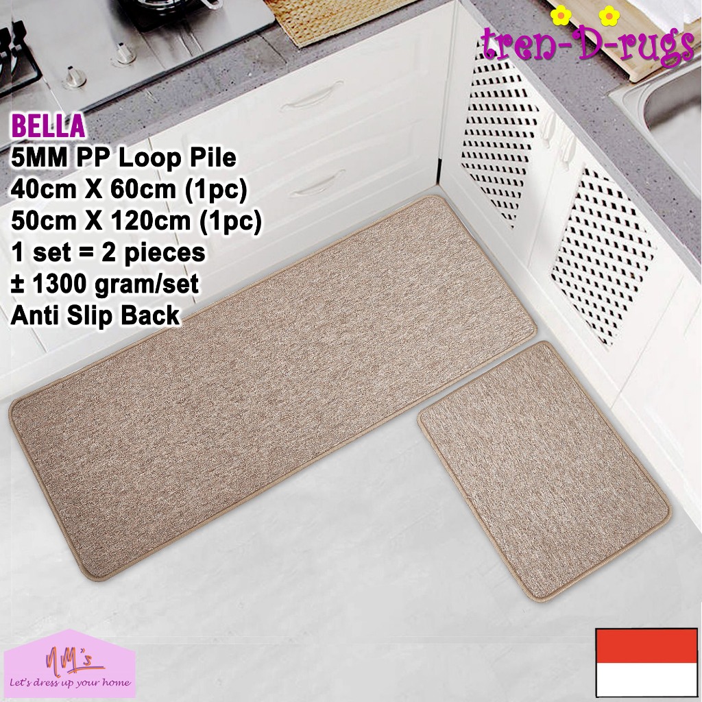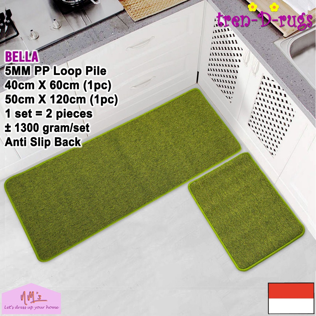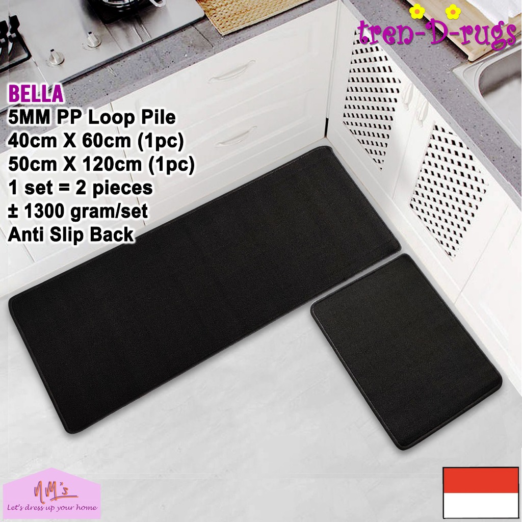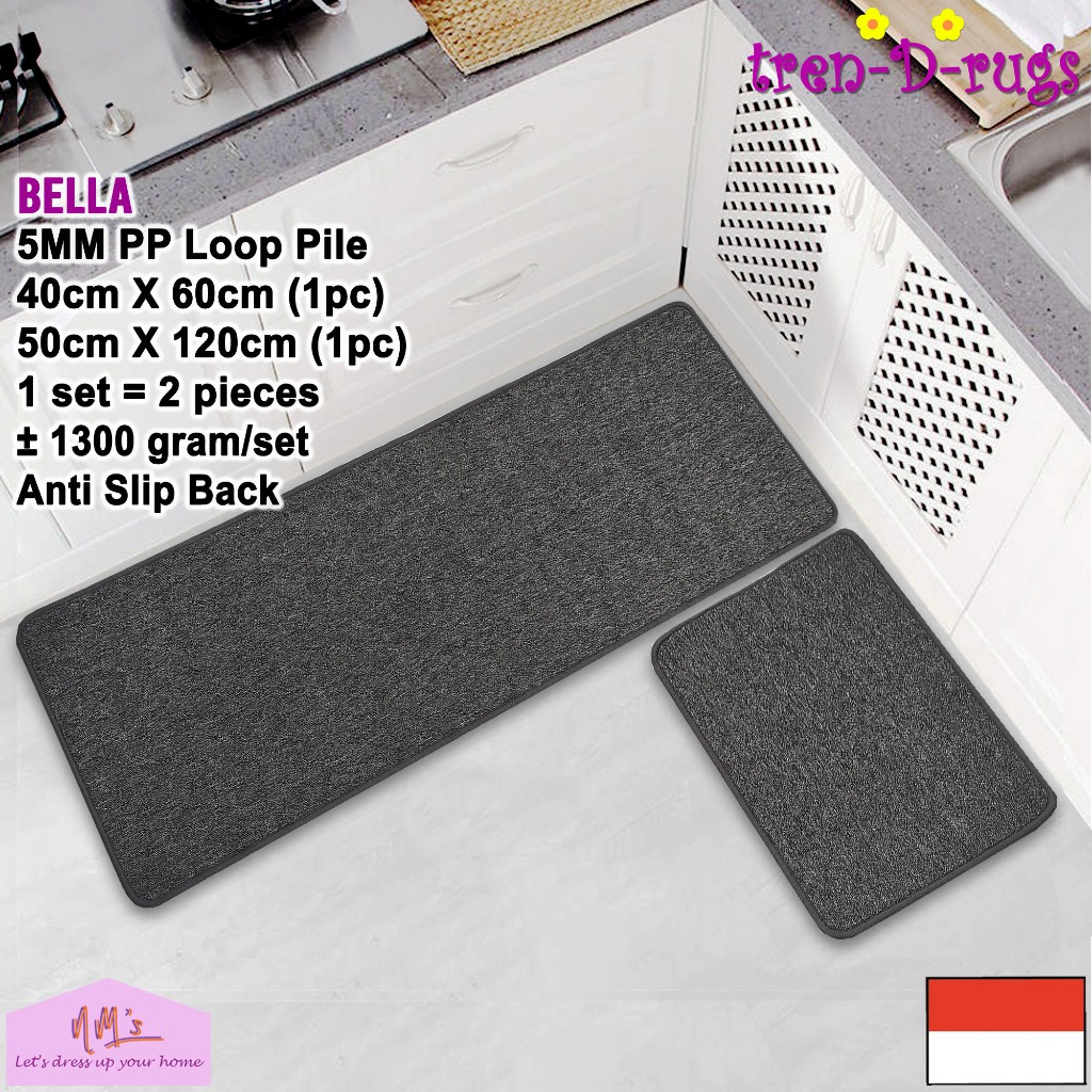 Tren-D-rugs Keset Kaki polos lantai dapur panjang lorong runner kitchen mat anti slip 1 set isi 2pcs - NMs