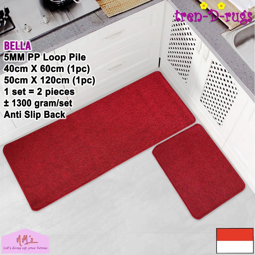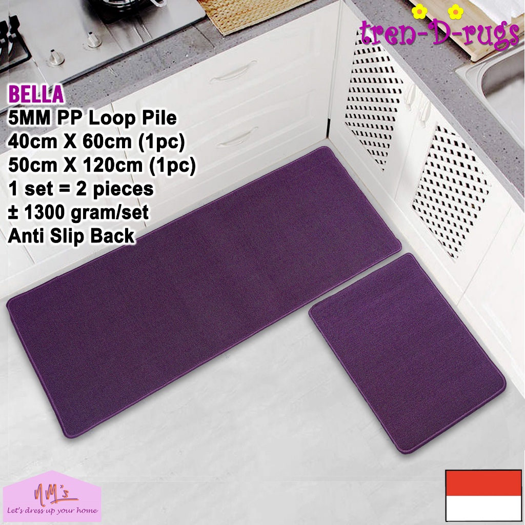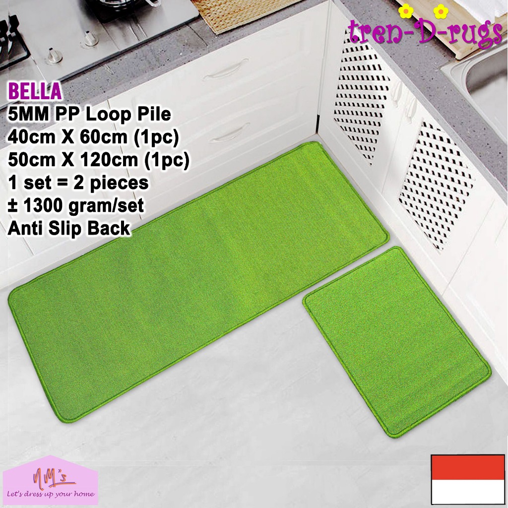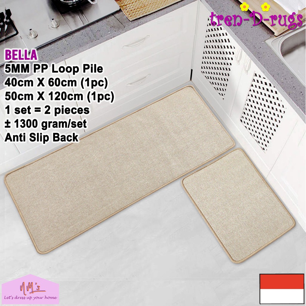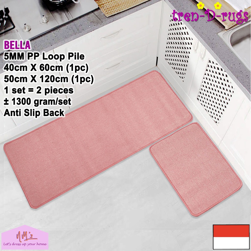Tren-D-rugs Keset Kaki polos lantai dapur panjang lorong runner kitchen mat anti slip 1 set isi 2pcs - NMs