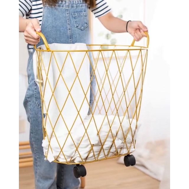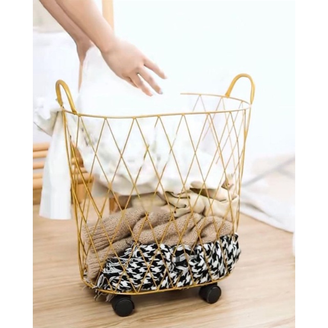 Keranjang Cucian Gold Keranjang Laundry Basket Emas Gold Estetik Mewah
