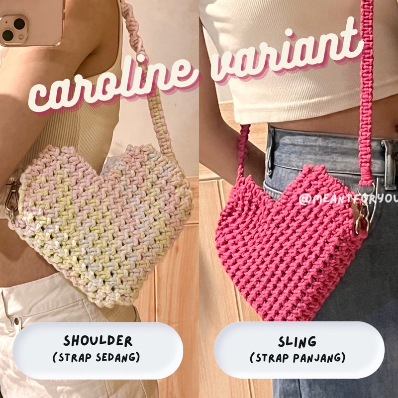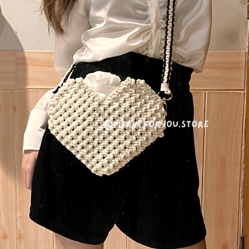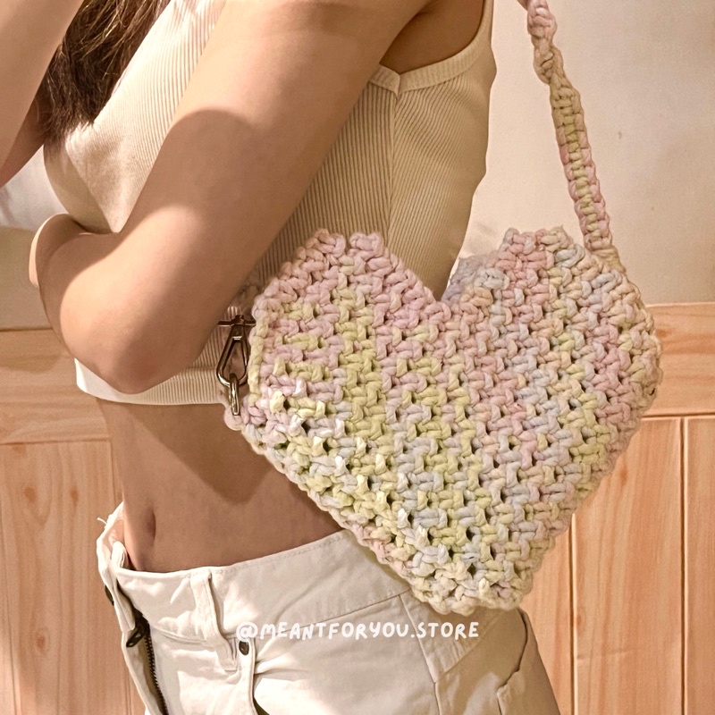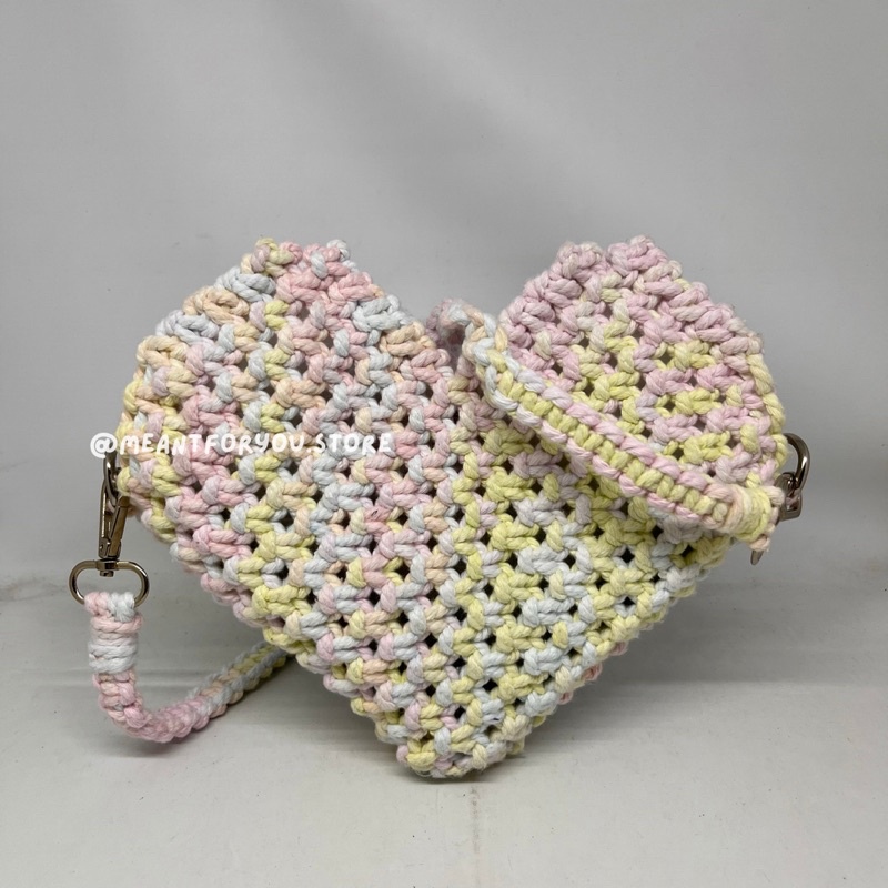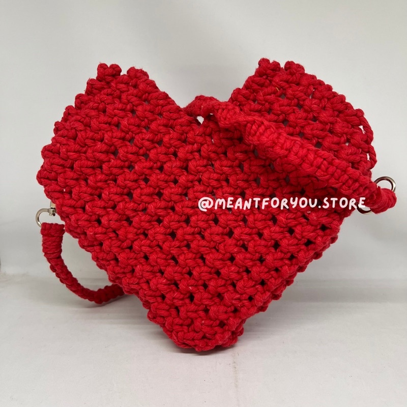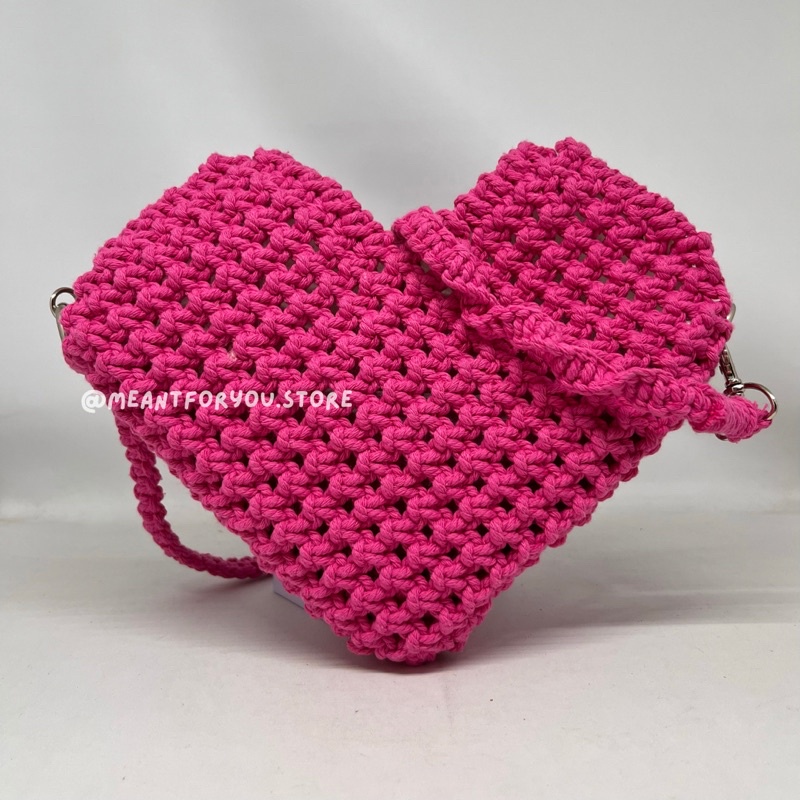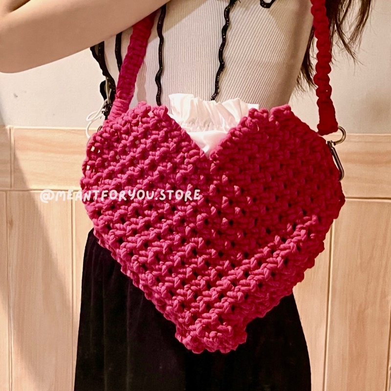 [ MEANTFORYOU ] Caroline heart bag | tas makrame macrame shoulder bag hati high quality hand bag love bag merah duo tone muda pink bahu furing bohemian estetik aesthetic klasik classic vintage clutch hadiah kado valentine