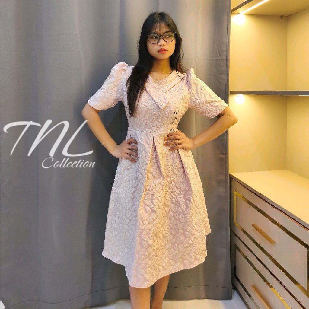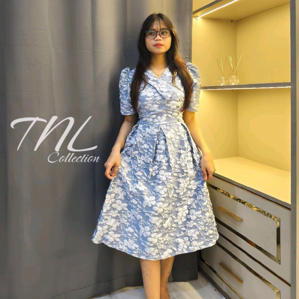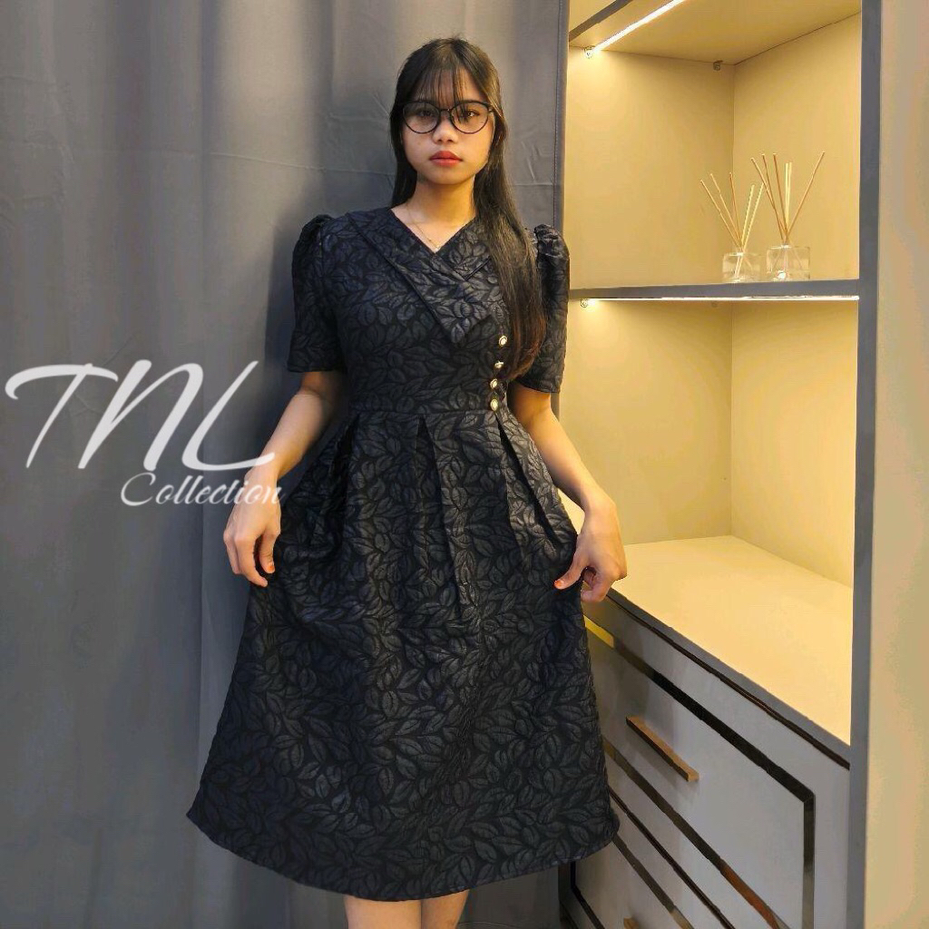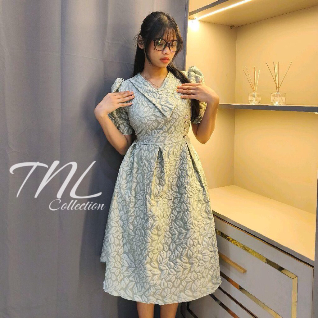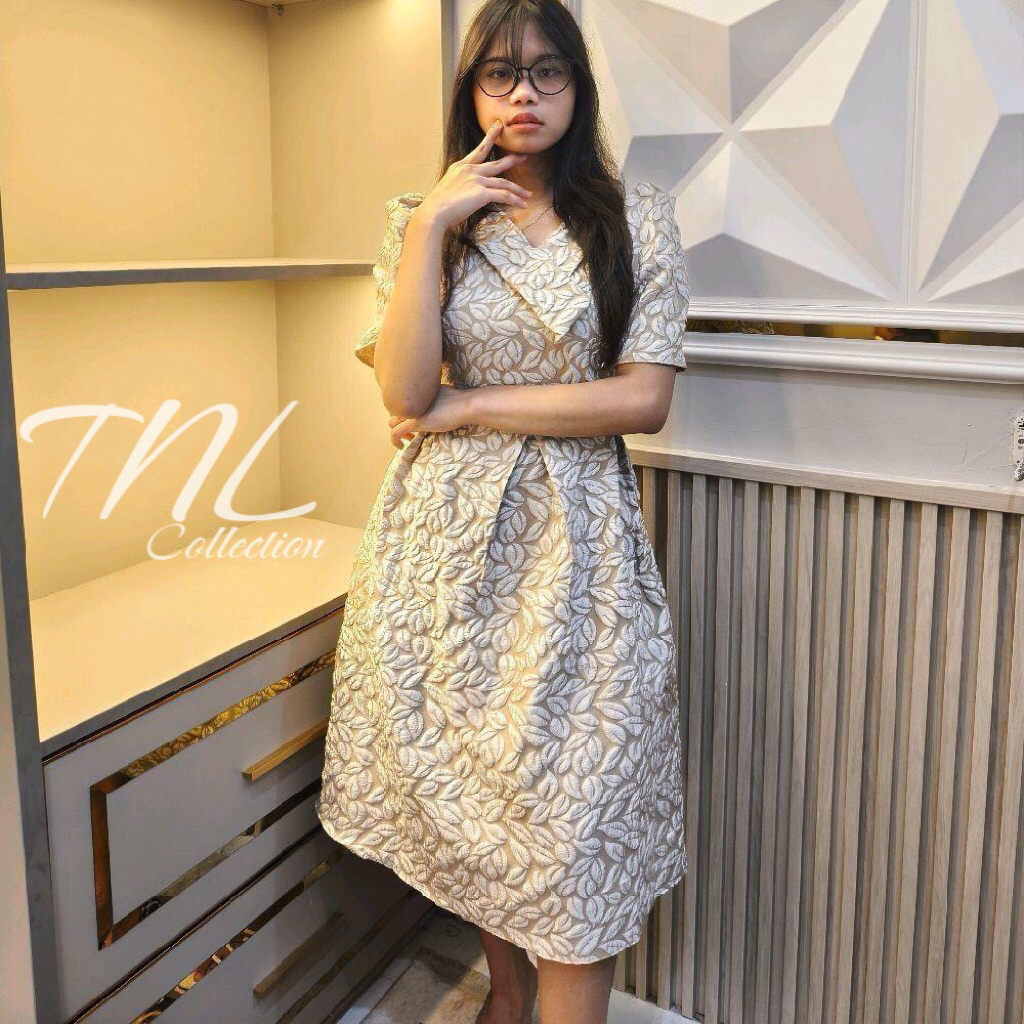 Viloza Dress Natal Dan Tahun Baru Kekinian Bahan Jacquard / Midi Dress / Dress Kondangan Elegan