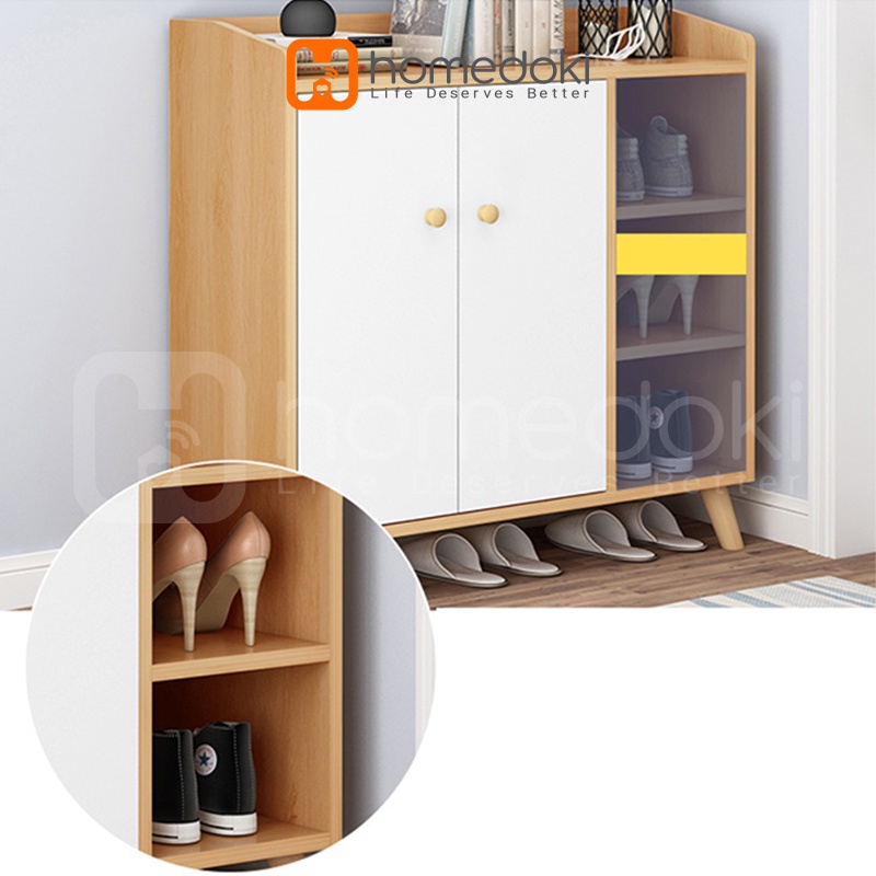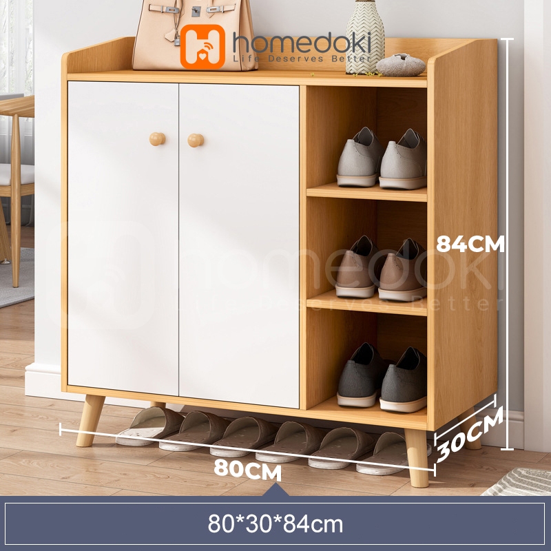 Homedoki Lemari Sepatu Susun Minimalis / Rak Sepatu Kapasitas Besar/Rak Sepatu Kayu Anti Debu Lemari Minimalis