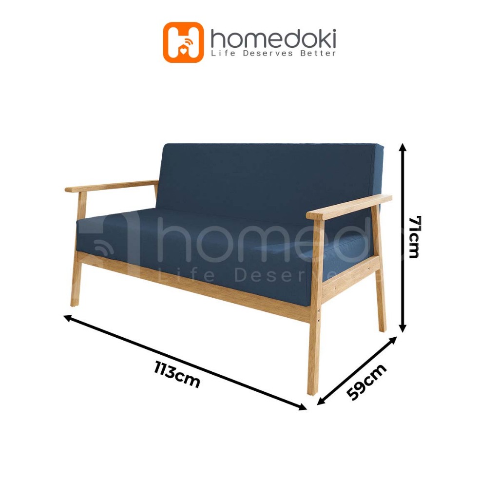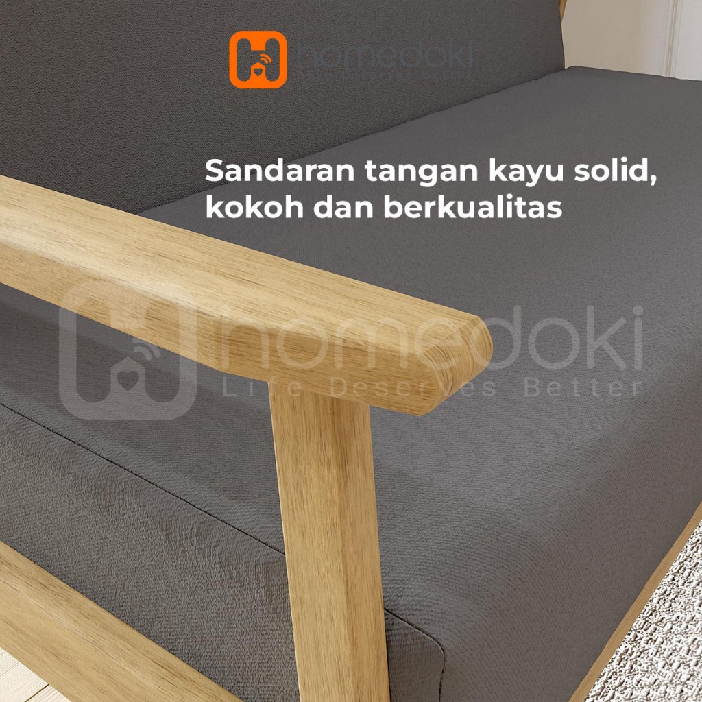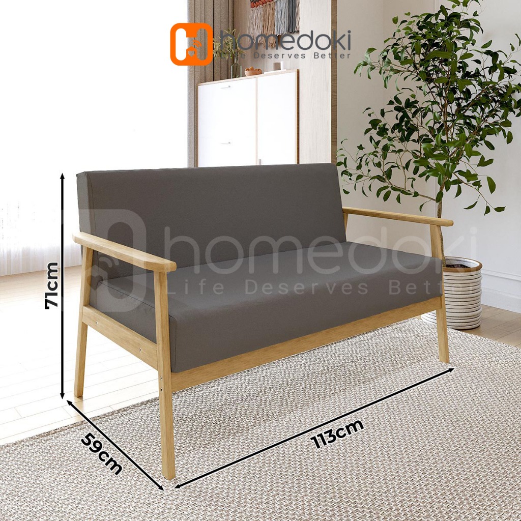 Homedoki Sofa Untuk 2 Orang/ Sofa Minimalis Modern / Sofa Kain Nordik/ Ruang Tamu Apartemen Kecil Sofa Kayu Solid