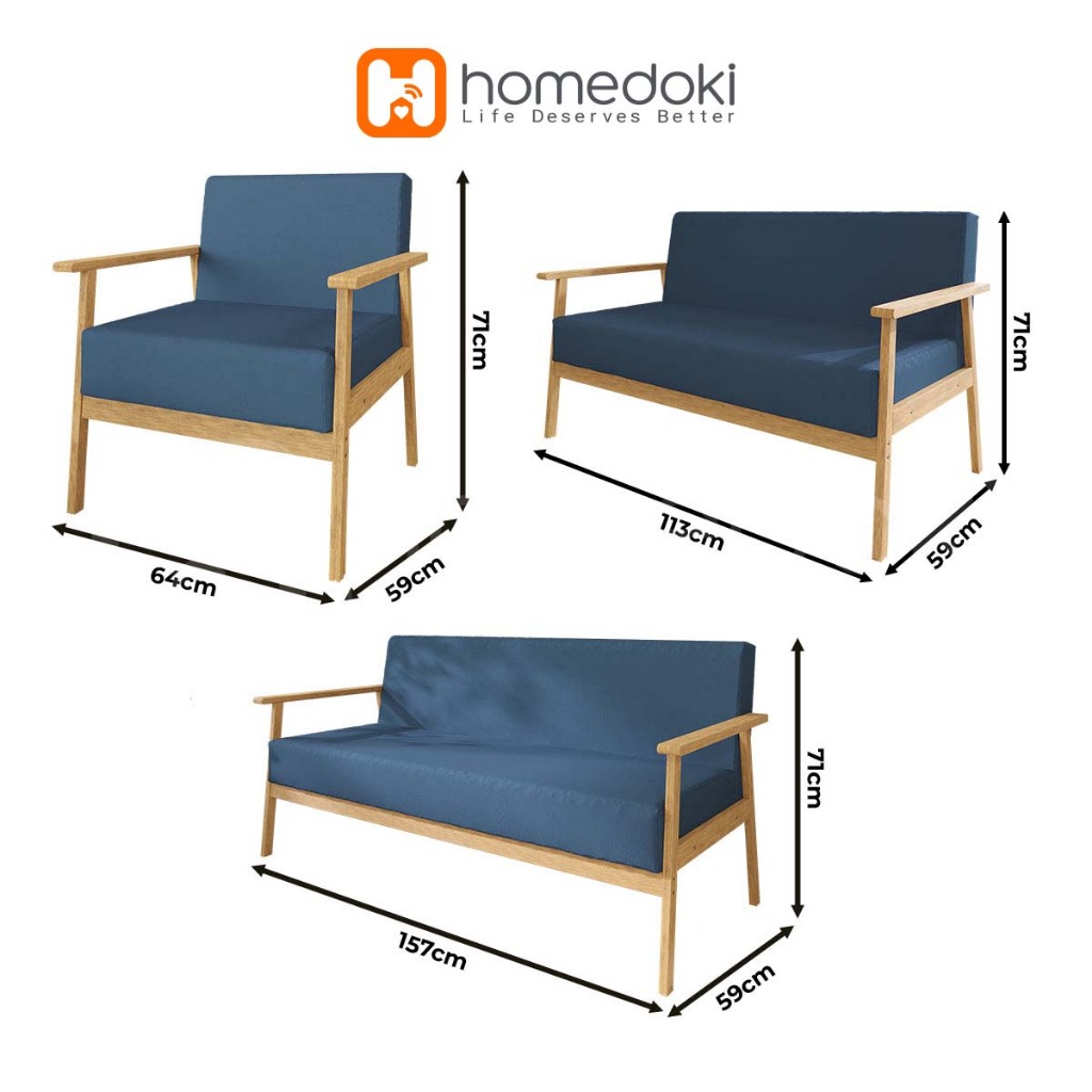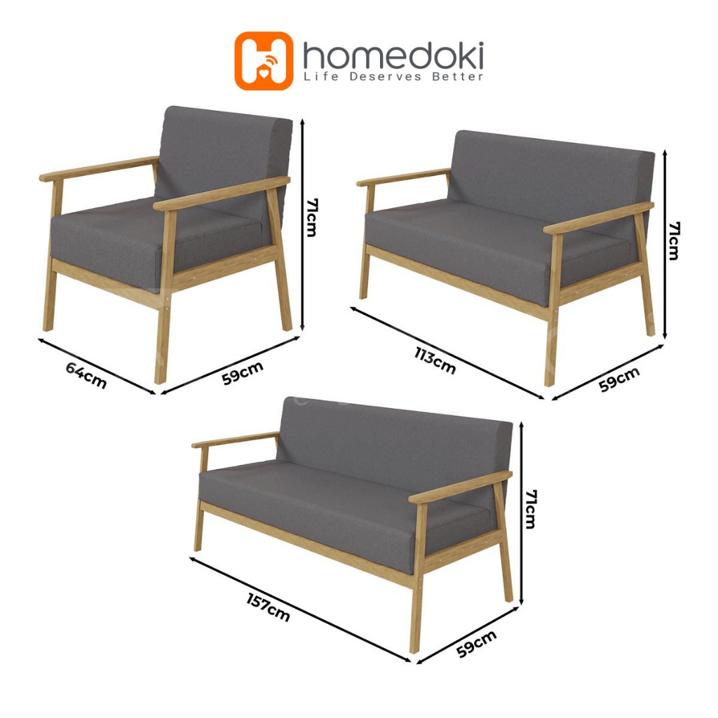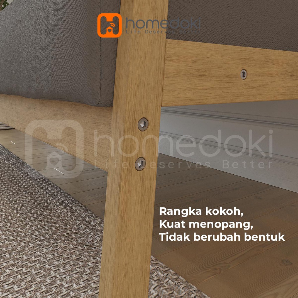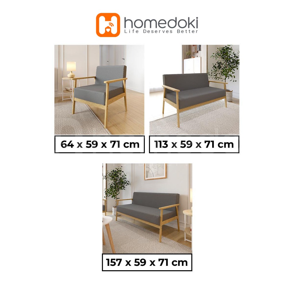 Homedoki Sofa Untuk 2 Orang/ Sofa Minimalis Modern / Sofa Kain Nordik/ Ruang Tamu Apartemen Kecil Sofa Kayu Solid
