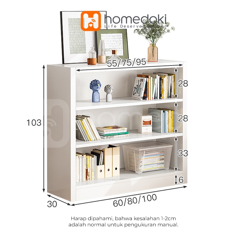 Homedoki Rak Buku Kayu Minimalis / Rak Buku Pajangan / Rak Buku Anak / Rak Buku Penyimpanan / Rak buku Serbaguna / Bookshelf