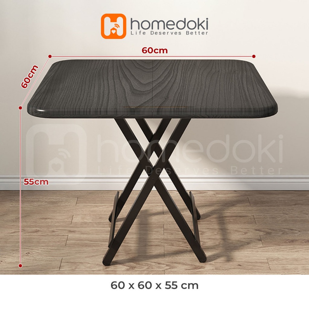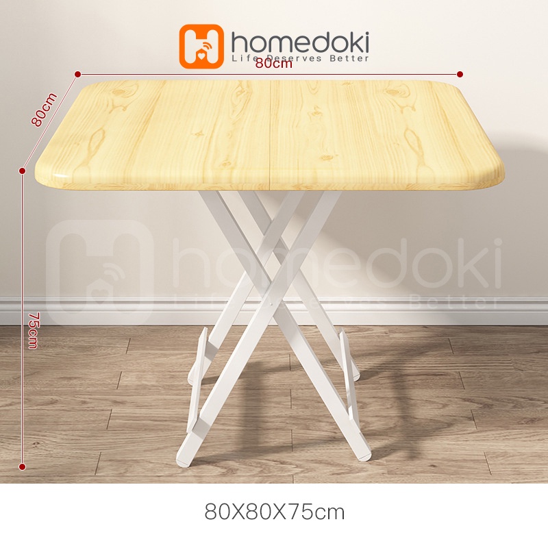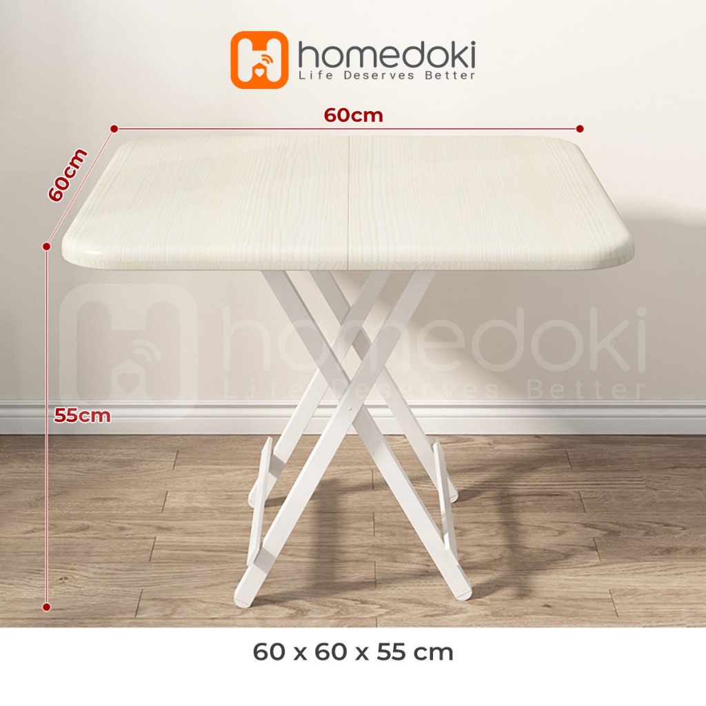 Homedoki Meja Lipat Ukuran 80x80x75 / Meja Makan Lipat / Meja Lipat Kayu / Meja Makan Portable / Meja Laptop Portable