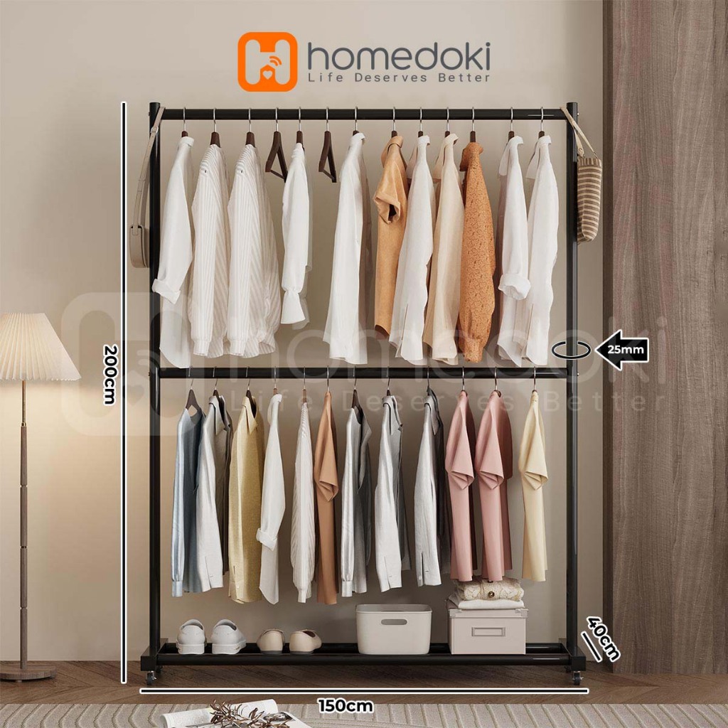 Homedoki Rak Baju Gantung / Stand Hanger / Rak Baju / Rak Pakaian / Rak Gantung Baju Kayu