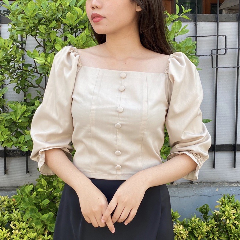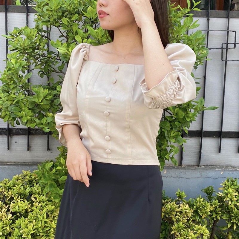 Atasan Blouse Wanita Korea Lengan Puff -YERI TOP-