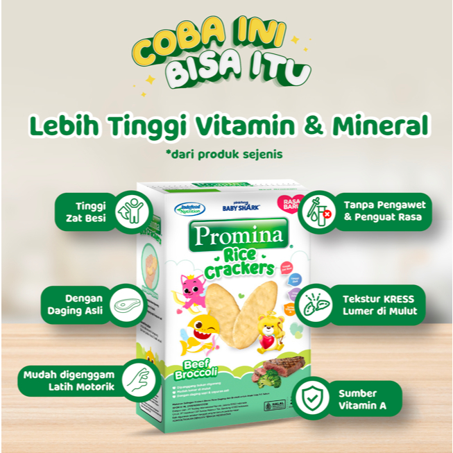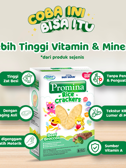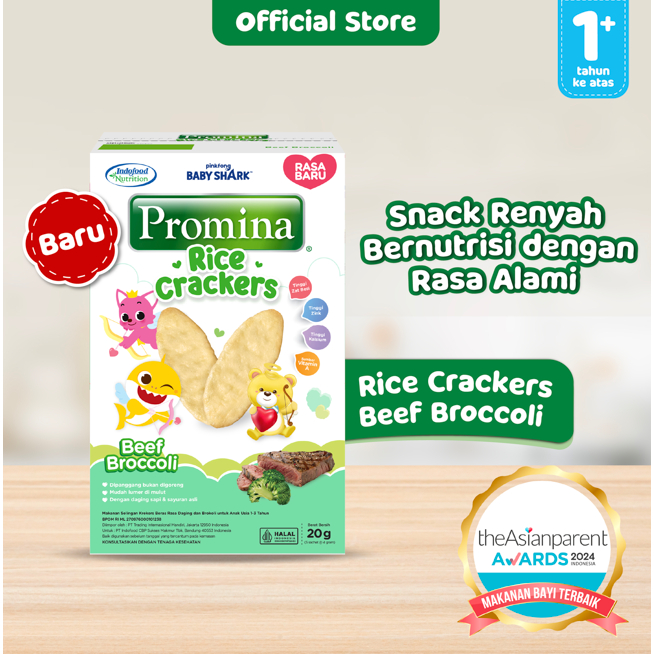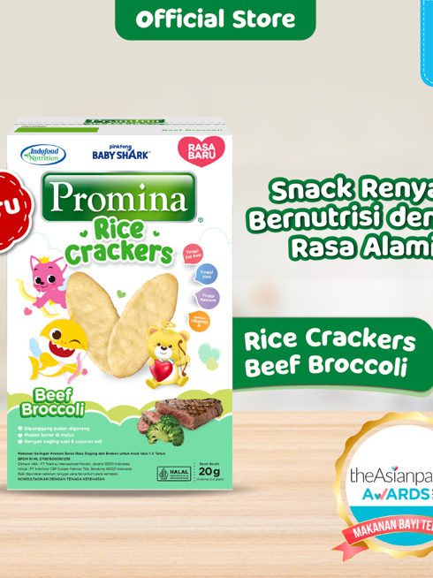 Promina Rice Crackers Broccoli BEEF / Broccoli Kale, Mixed Berries 20g - Tinggi Zat Besi, Kalsium, Vitamin A 1thn+