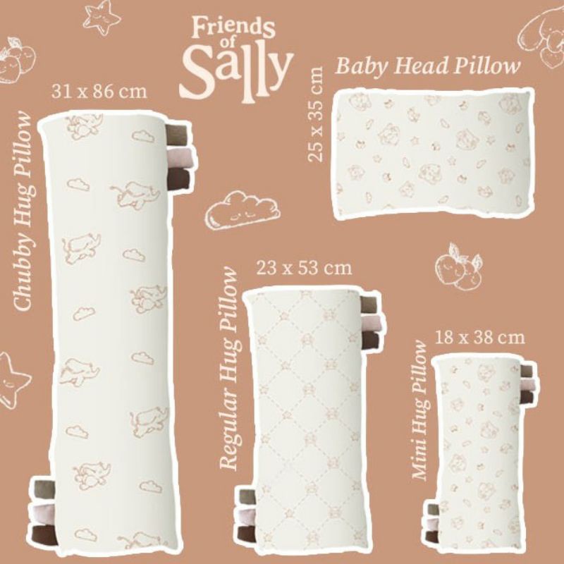Friends Of Sally Original/ Watercolor /Hello Kitty /Zion the Lion - Mini Hug / Regular Hug / Baby & Toddler Head Pillow - Bantal / Guling Anak