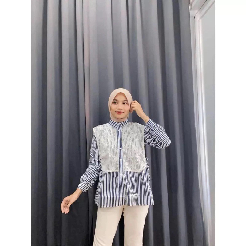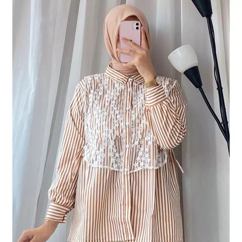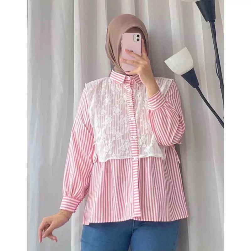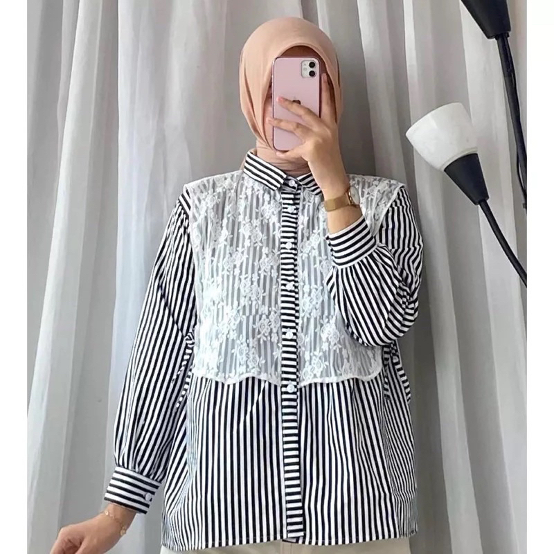 YURA BLOUSE KATUN MIX BRUKAT/BLOUSE WANITA KATUN/BLOUSE WANITA KEKINIAN