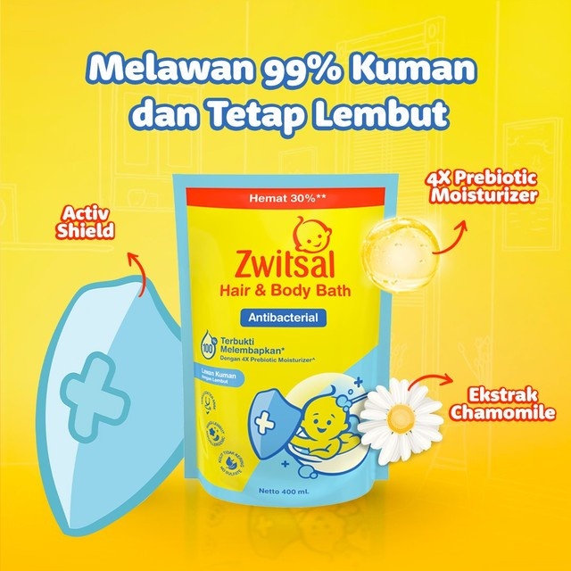 Refill Zwitsal Baby Bath 2in1 400ml / Sabun Mandi Zwitsal Hair & Body 400ml