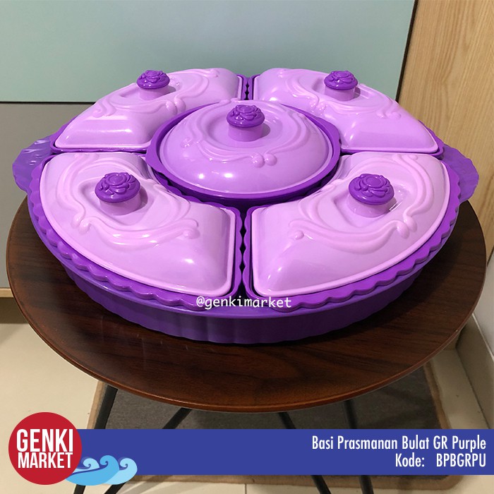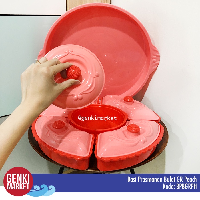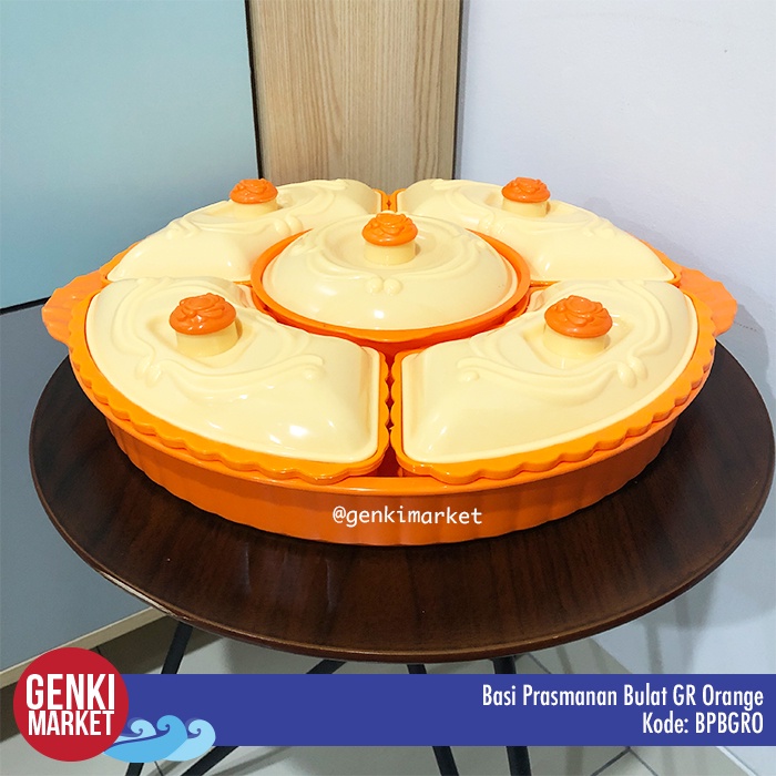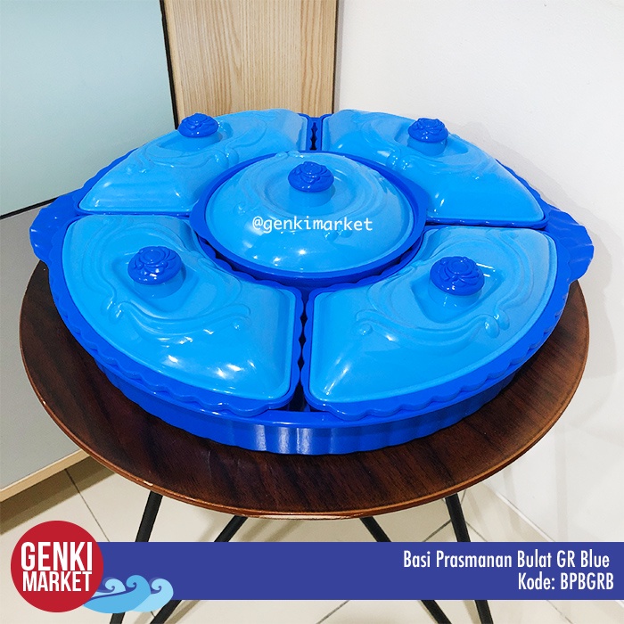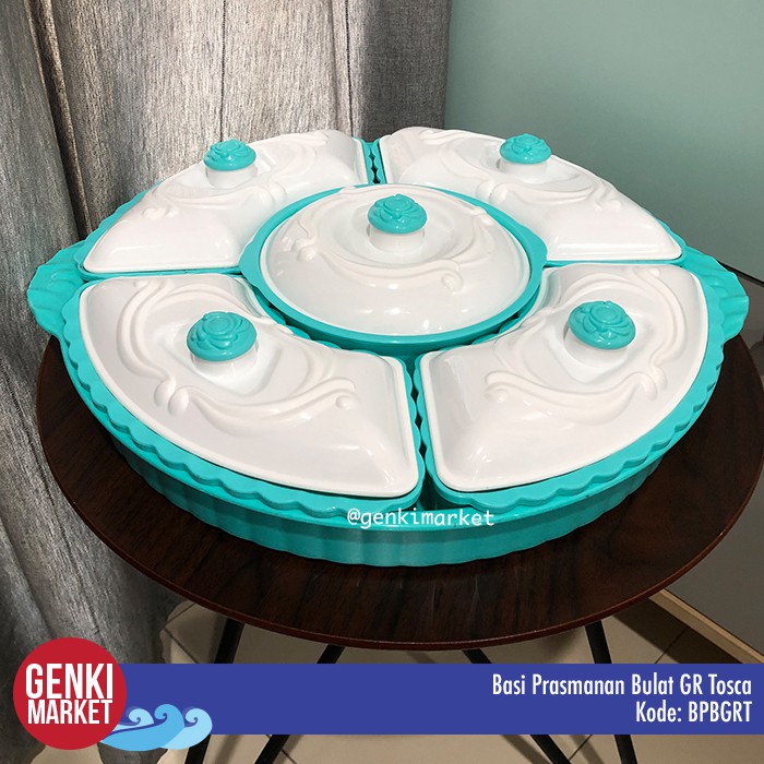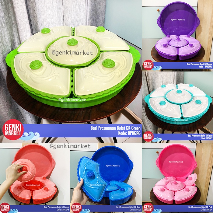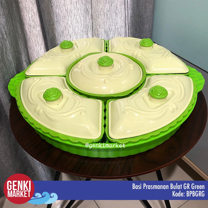 Basi Prasmanan Bulat Jumbo 38cm 5in1 Tempat Penyimpanan Makanan Sayur Buah Lauk Cemilan di Meja Makan Genki Market