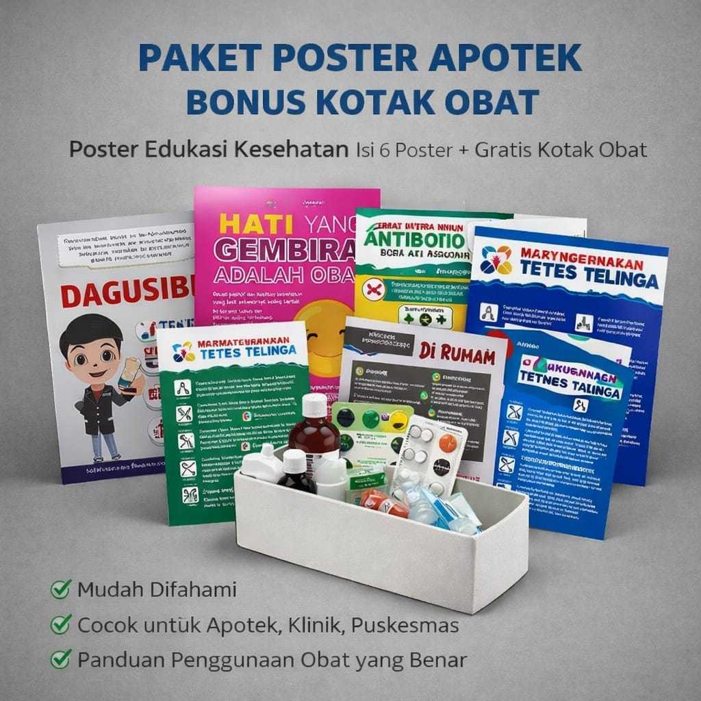 Paket Poster Edukasi Apotek Lengkap + Bonus Kotak Obat - Poster Kesehatan Klinik Puskesmas - Farmasi