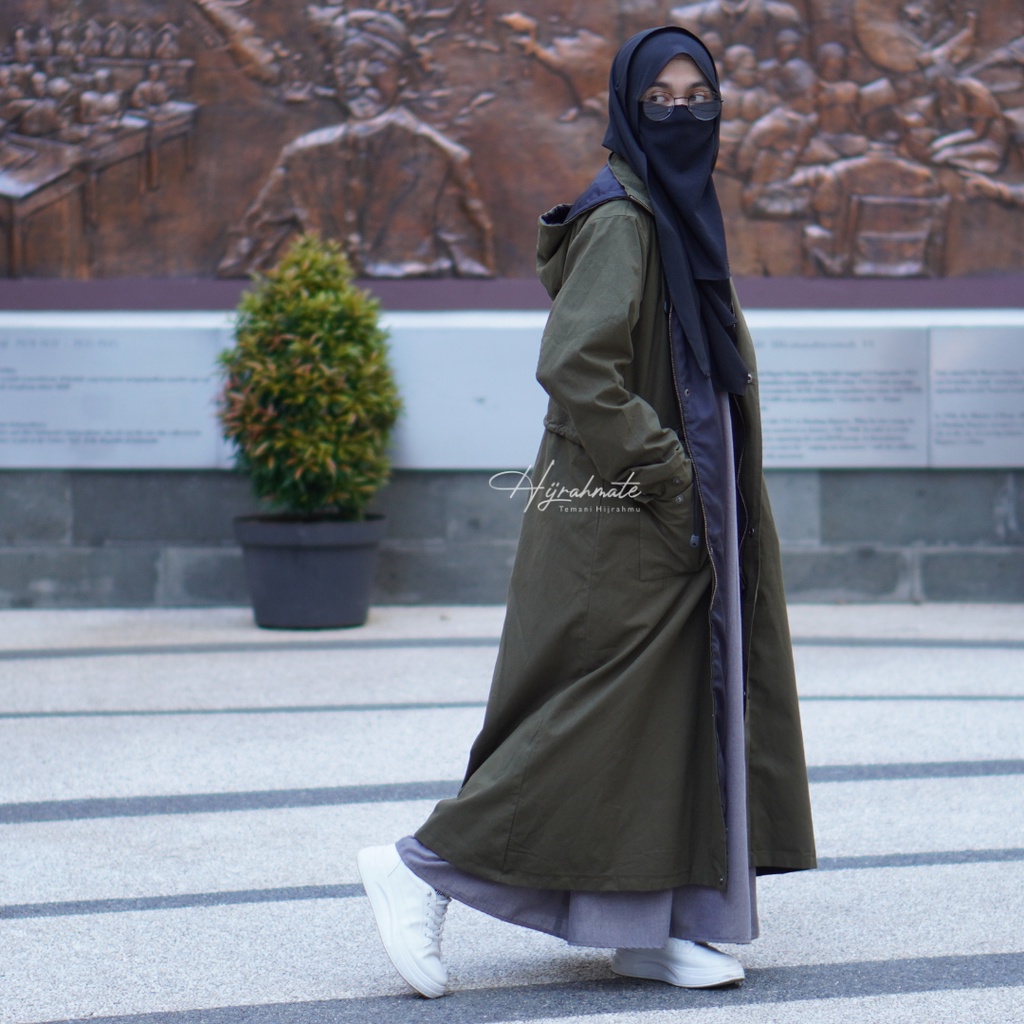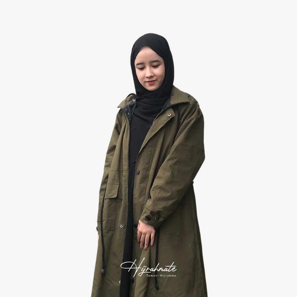 Hijrahmate - Jaket Parka Muslimah Aisha Jaket Hijaber dg Hoodie & Inner Pocket Rahasia