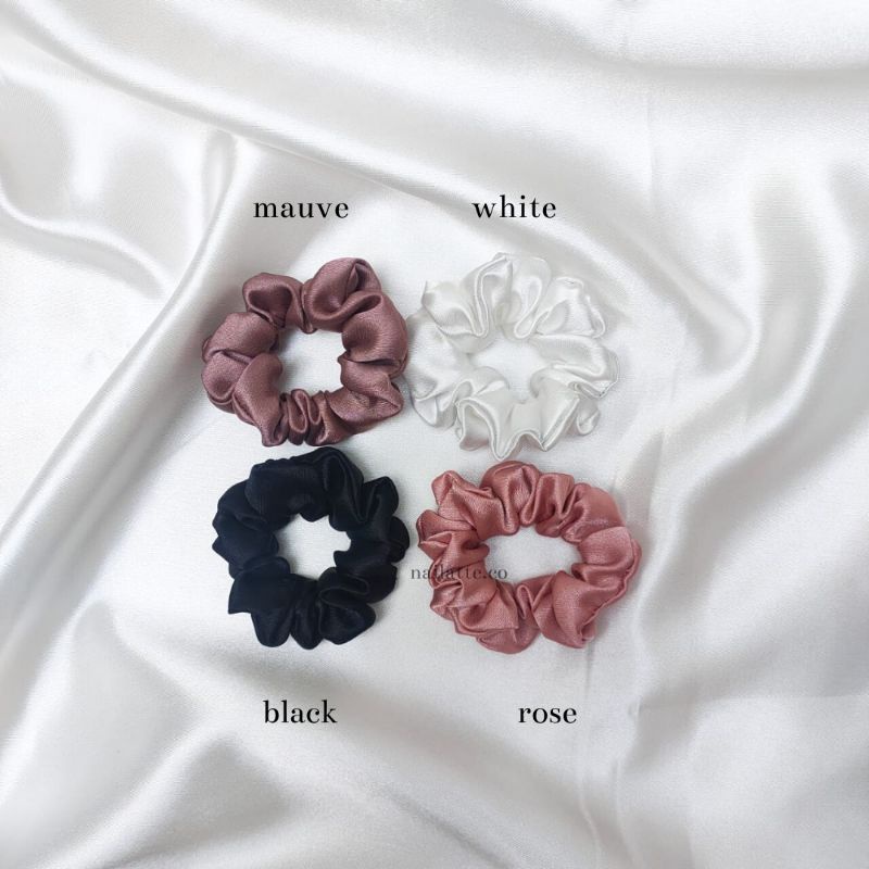 Scrunchie ikat rambut satin silk mini aesthetic souvenir kunciran ikat rambut scrunchie kecil korea kekinian nyaman lembut import premium medium pink skrunchie scrunci scrunchy merah small