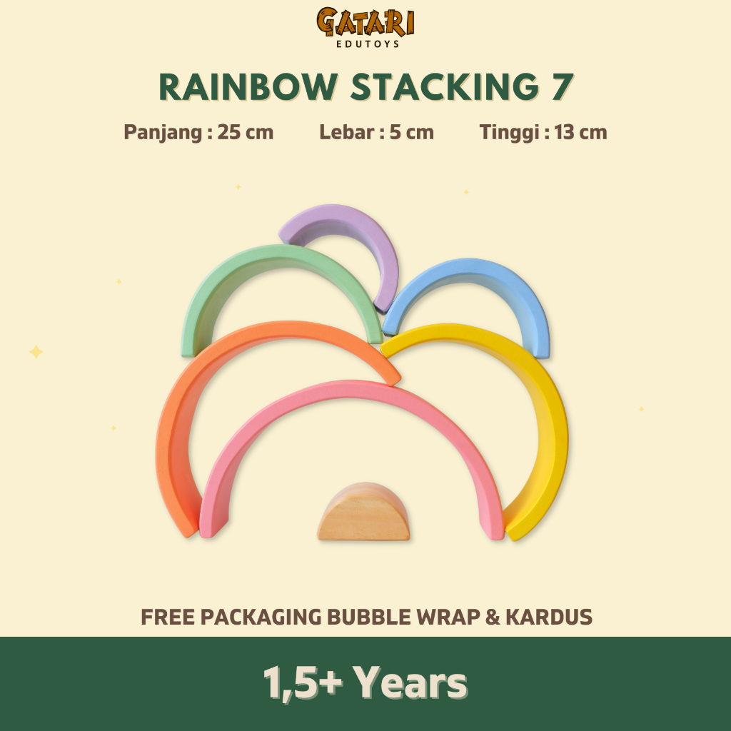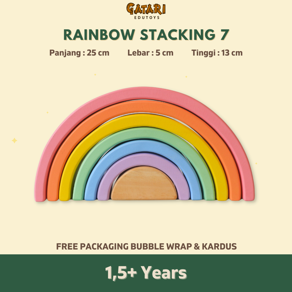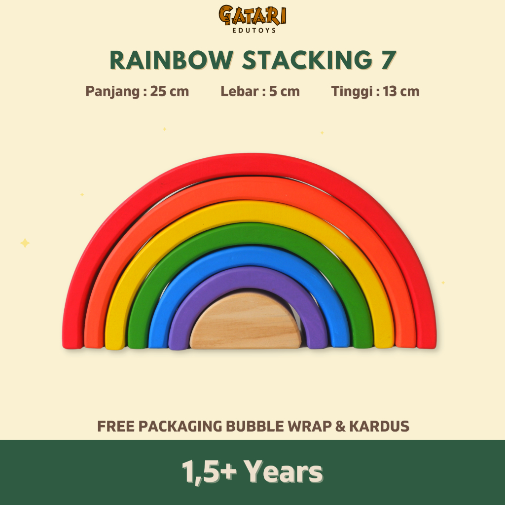 Rainbow Stacking 7pcs / Wooden Rainbow / Pelangi Susun / Rainbow Stacker Big - Gatari Edutoys