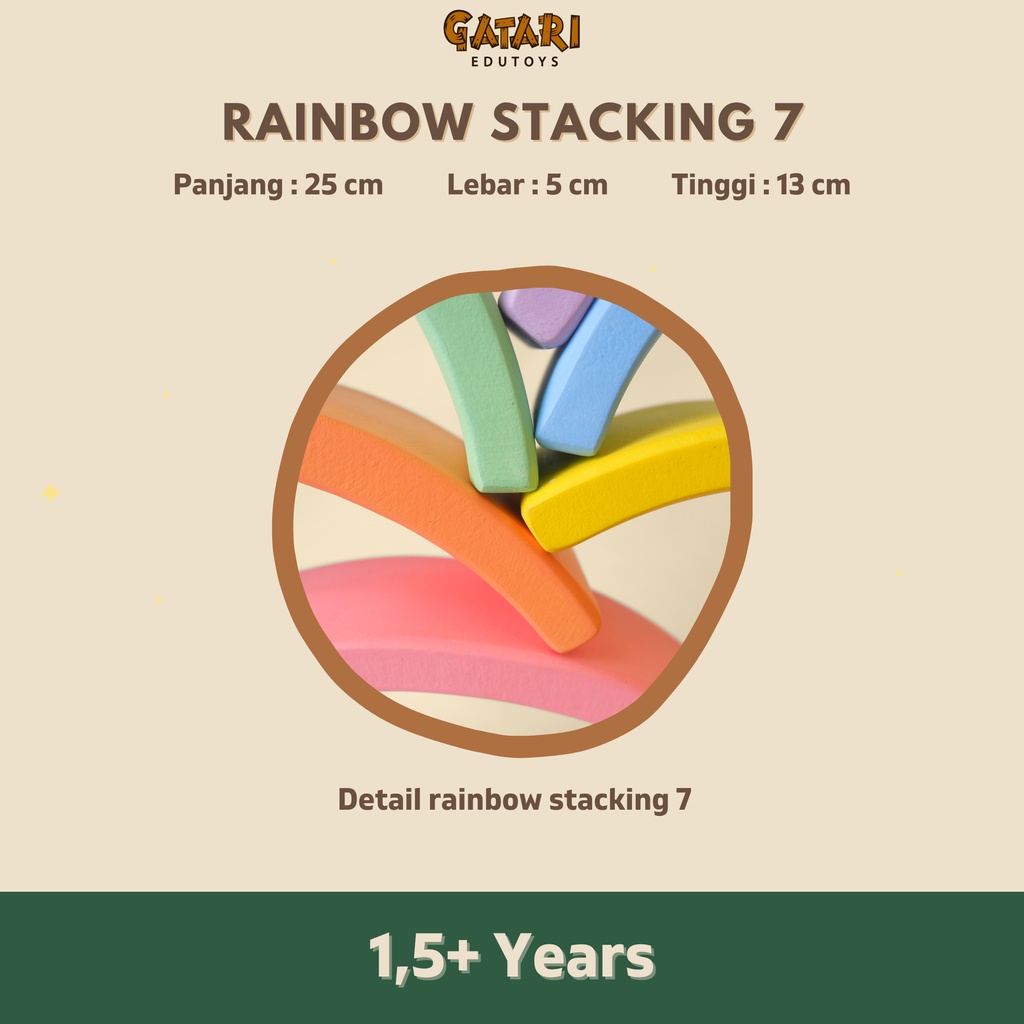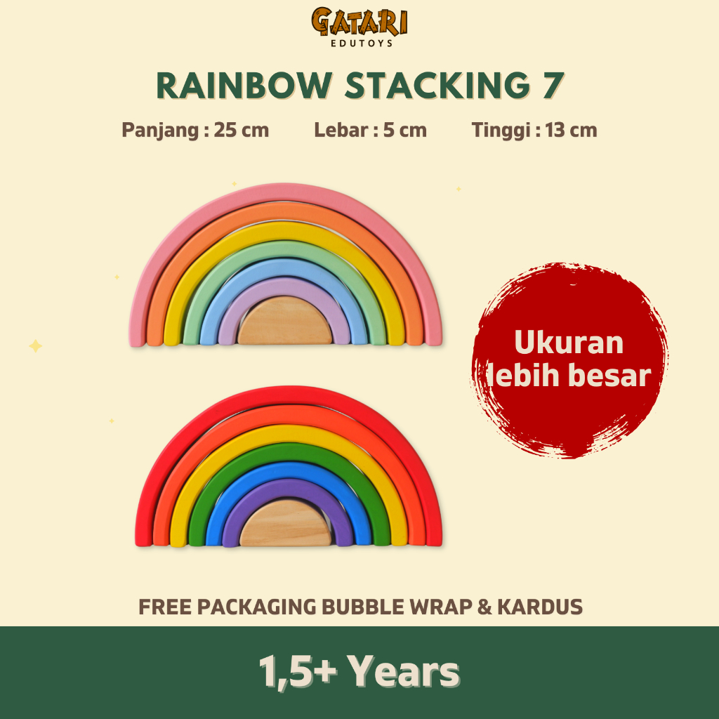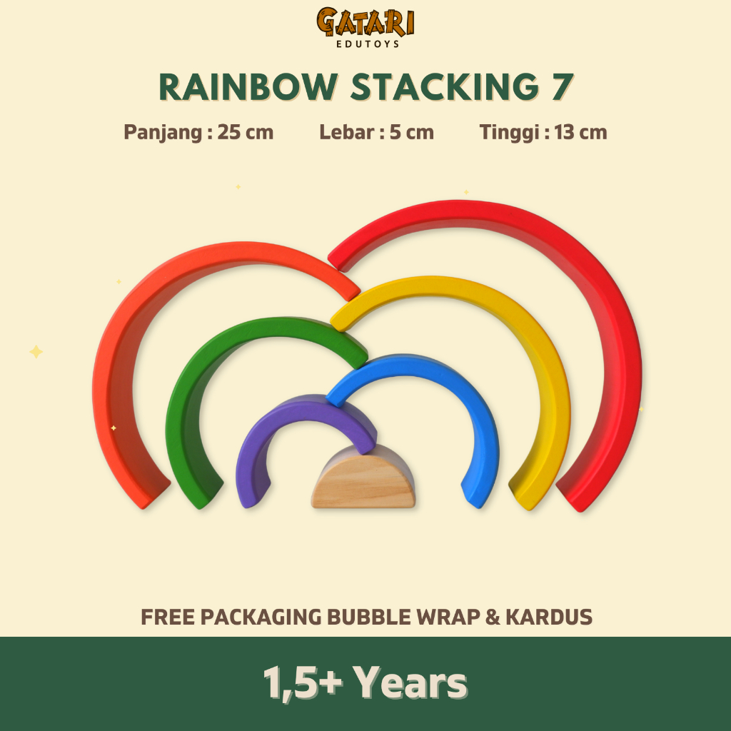 Rainbow Stacking 7pcs / Wooden Rainbow / Pelangi Susun / Rainbow Stacker Big - Gatari Edutoys