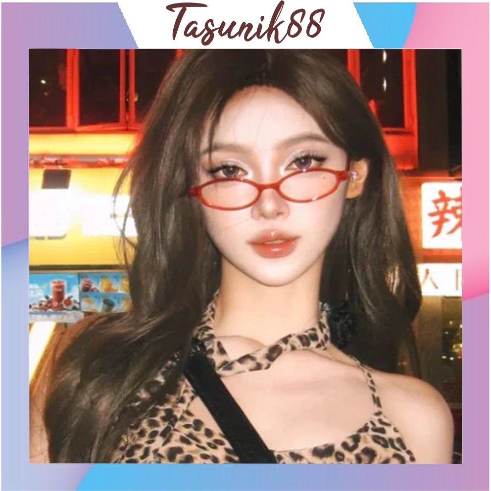 TASUNIK88 Kacamata bingkai kecil dua dimensi Jepang dan Korea, pemotretan jalanan wanita, bingkai kacamata merah polos G057