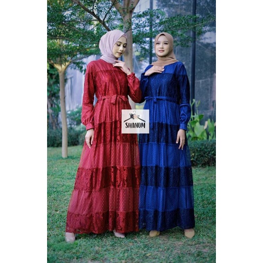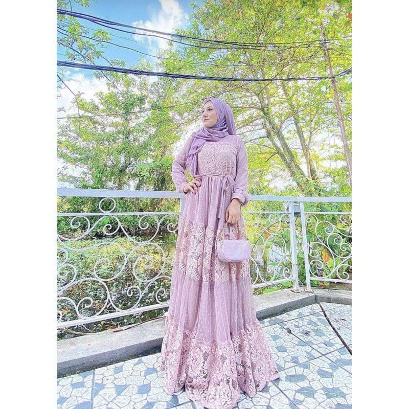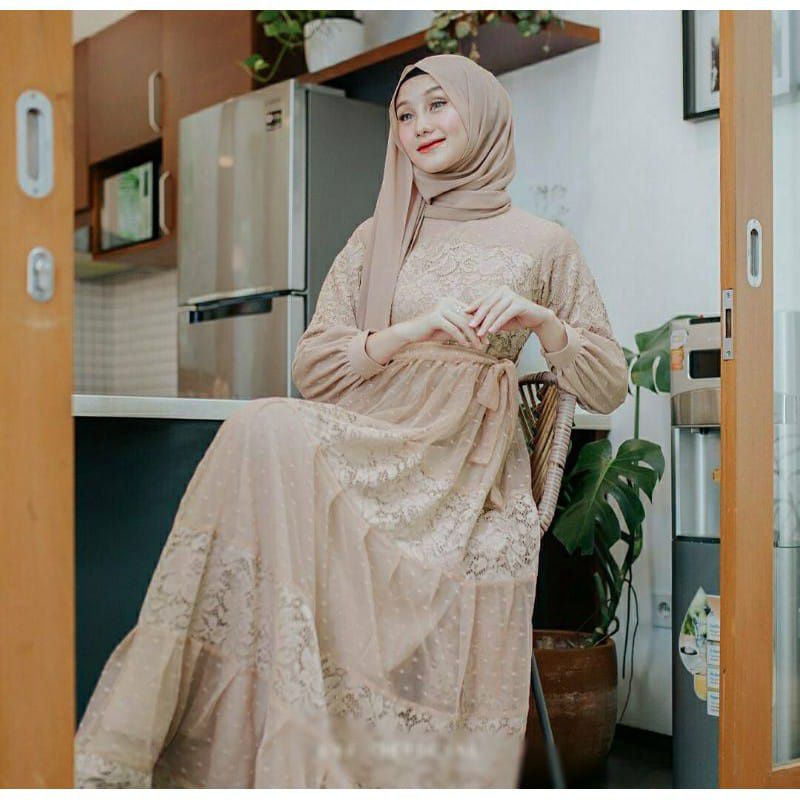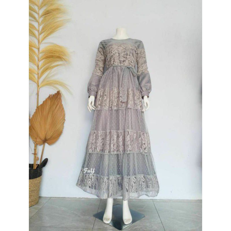 GAMIS BRUKAT KOMBINASI/GAMIS BROKAT BUSUI/Gamis Brukat Syari Glitter Nadhira Dress JUMBO Tulle Dotti
