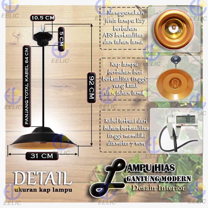 EELIC LHG-119 Lampu hias gantung kap klasik modern kabel flexible lampu hias cafe desain interior