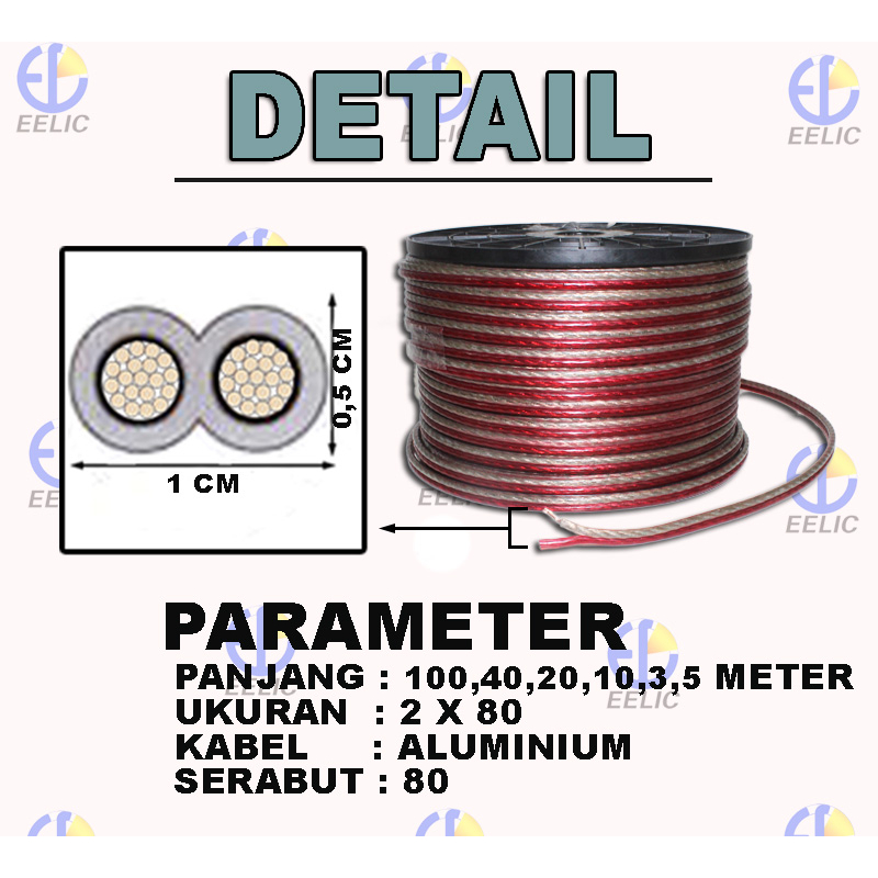 EELIC KAL-I2X80 -40M KABEL LISTRIK AUDIO SERABUT TRANSPARANT 2X80 SAMA DENGAN 2X2.5 MM2