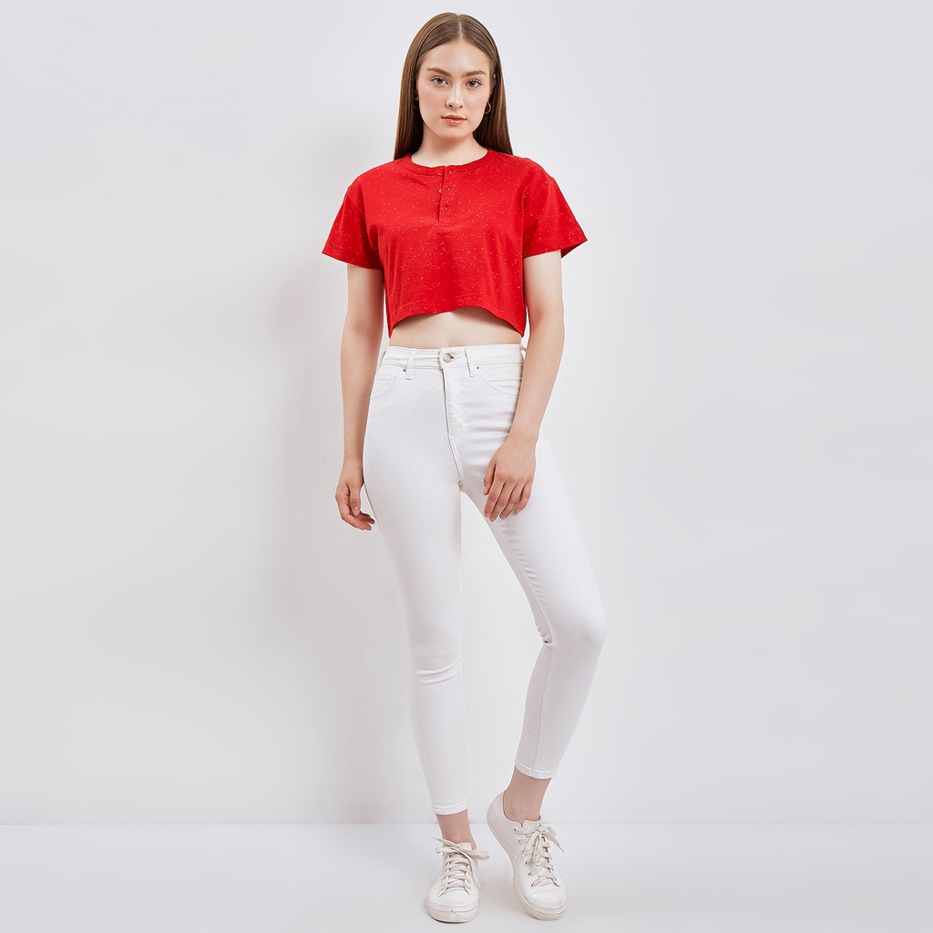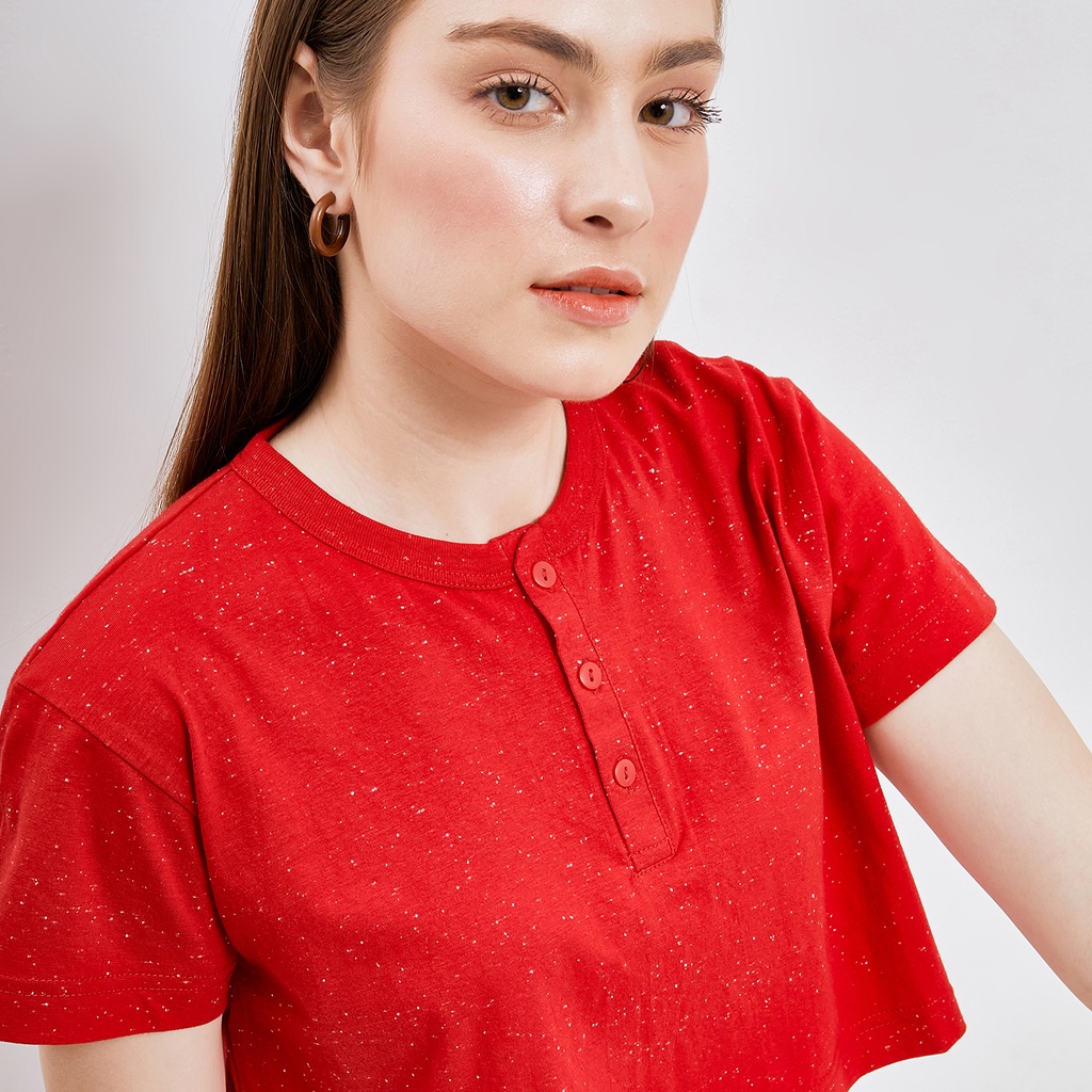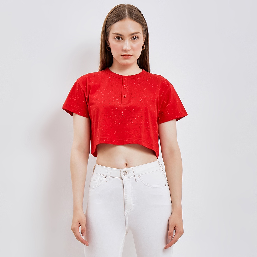 NIOS KAOS MERAH IMLEK Crop T-Shirt Galaxy Henley Tee Crop Top Lengan Pendek