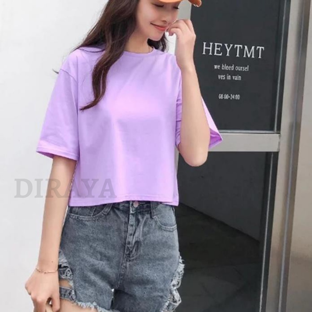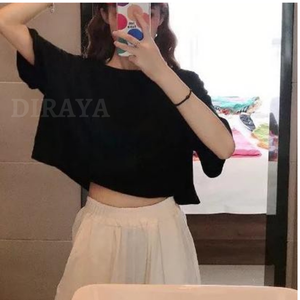 Diraya Kaos Crop Top Oversize Polos Basic Korea Wanita Combed