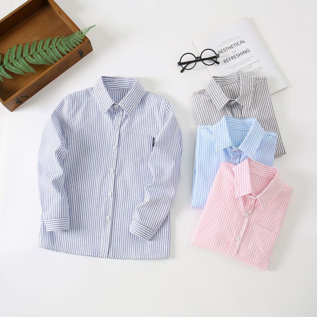 kemeja anak laki laki perempuan lengan panjang putih hitam pink biru umur 0-12 tahun MINK