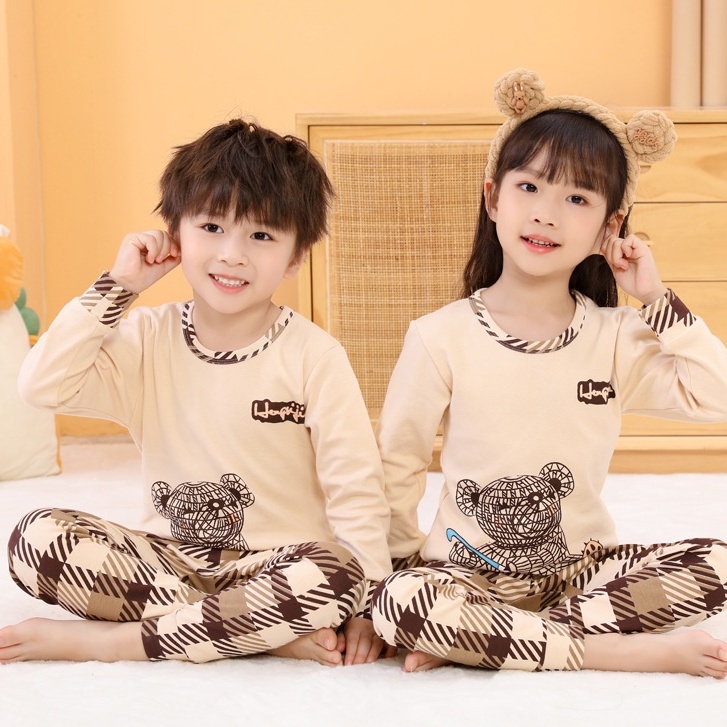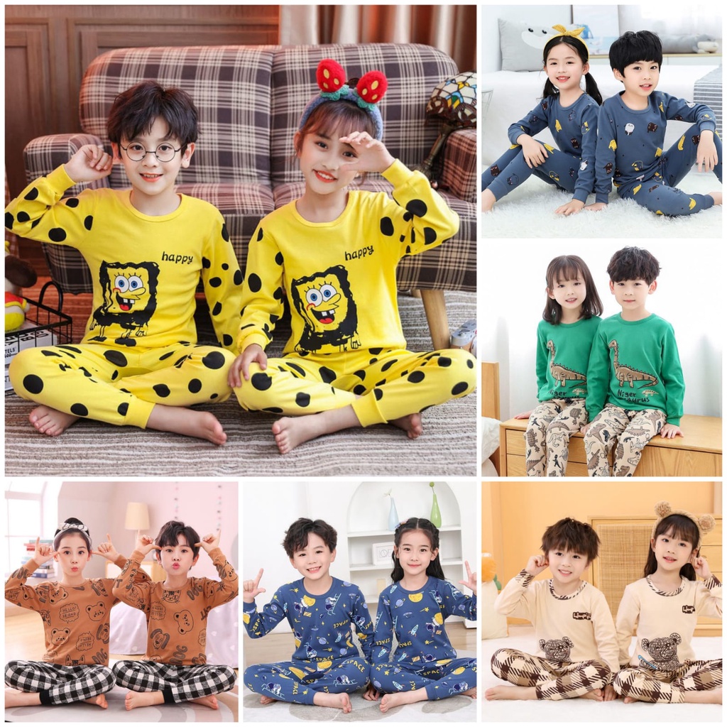 JPAI (7-12) SETELAN PIYAMA ANAK 2-12 TAHUN BAJU TIDUR ANAK LAKI-LAKI PEREMPUAN PIYAMA COUPLE KATUN