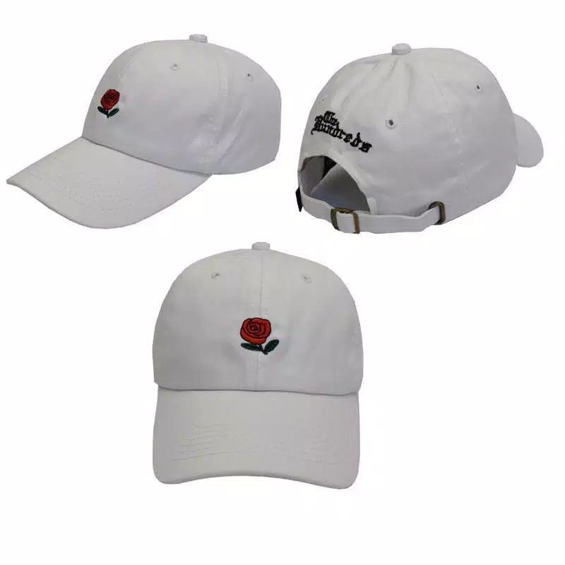 (COD) FREE Gift !Topi Distro Baseball Unisex Hat Bunga Mawar Bordir Pinggiran Melengkung - Topi Murah -Topi