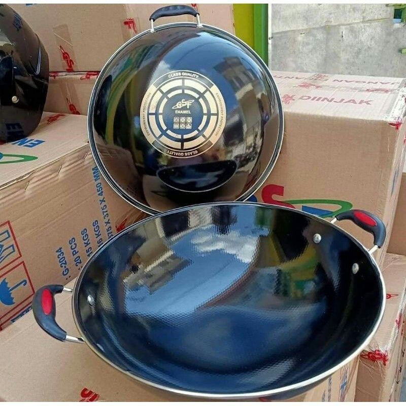 Wajan Enamel Jumbo 30-40Cm Kuali Wok Penggorengan Anti Lengket Penggorengan serbaguna hemat minyak