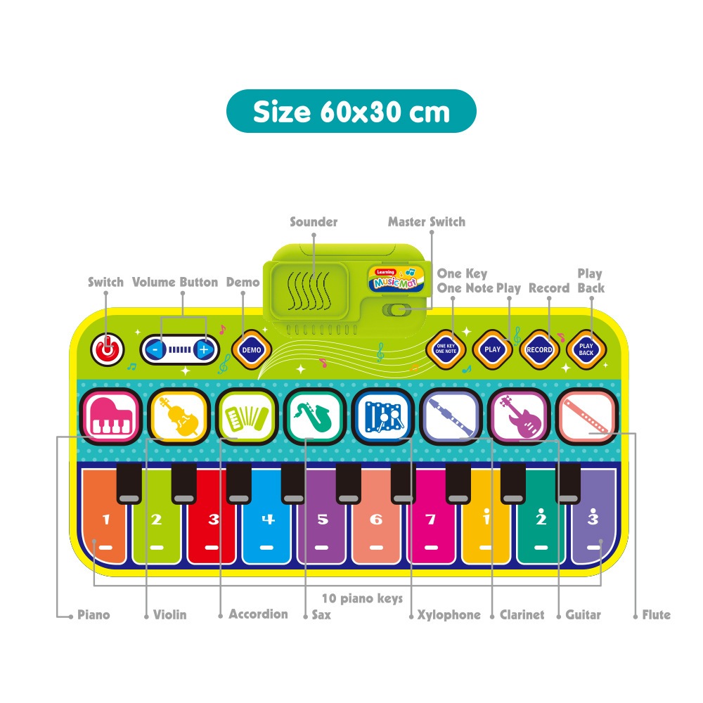 (8 ALAT MUSIK) JW Mainan Edukasi Anak Piano Music Mat Dapat Ditekan & Diinjak Matras Musik Mainan Instrumen