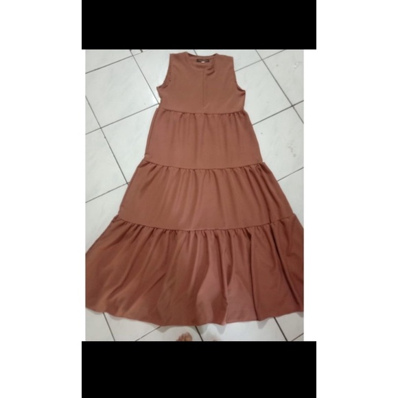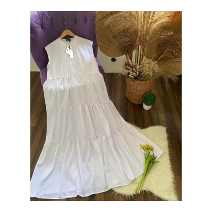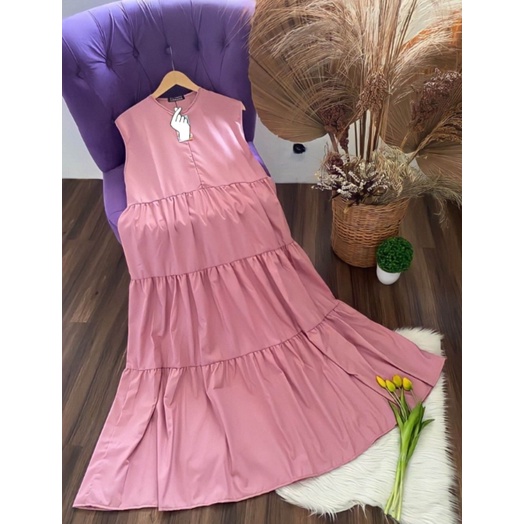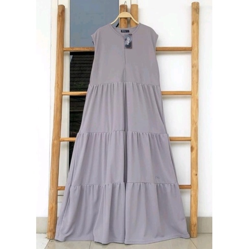 Zhariffa | Inner Dress Panjang Rempel Bersusun Tanpa Lengan Bahan Crinkle Airflow Premium