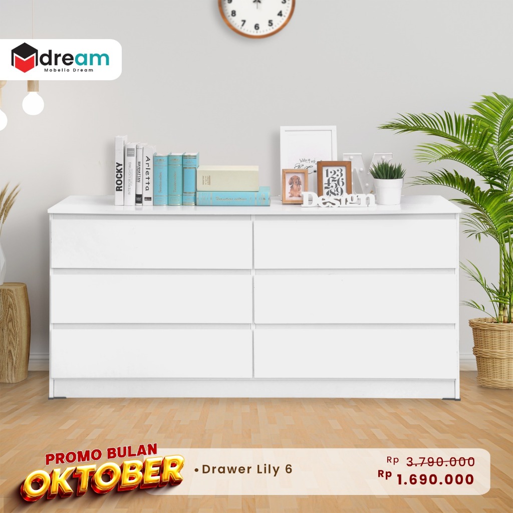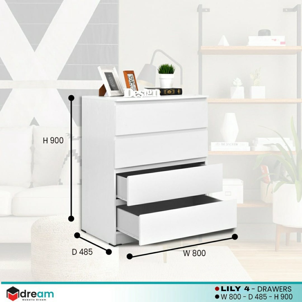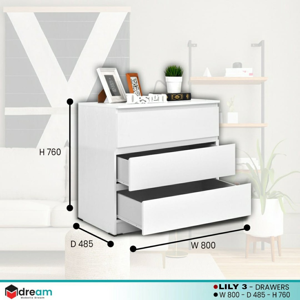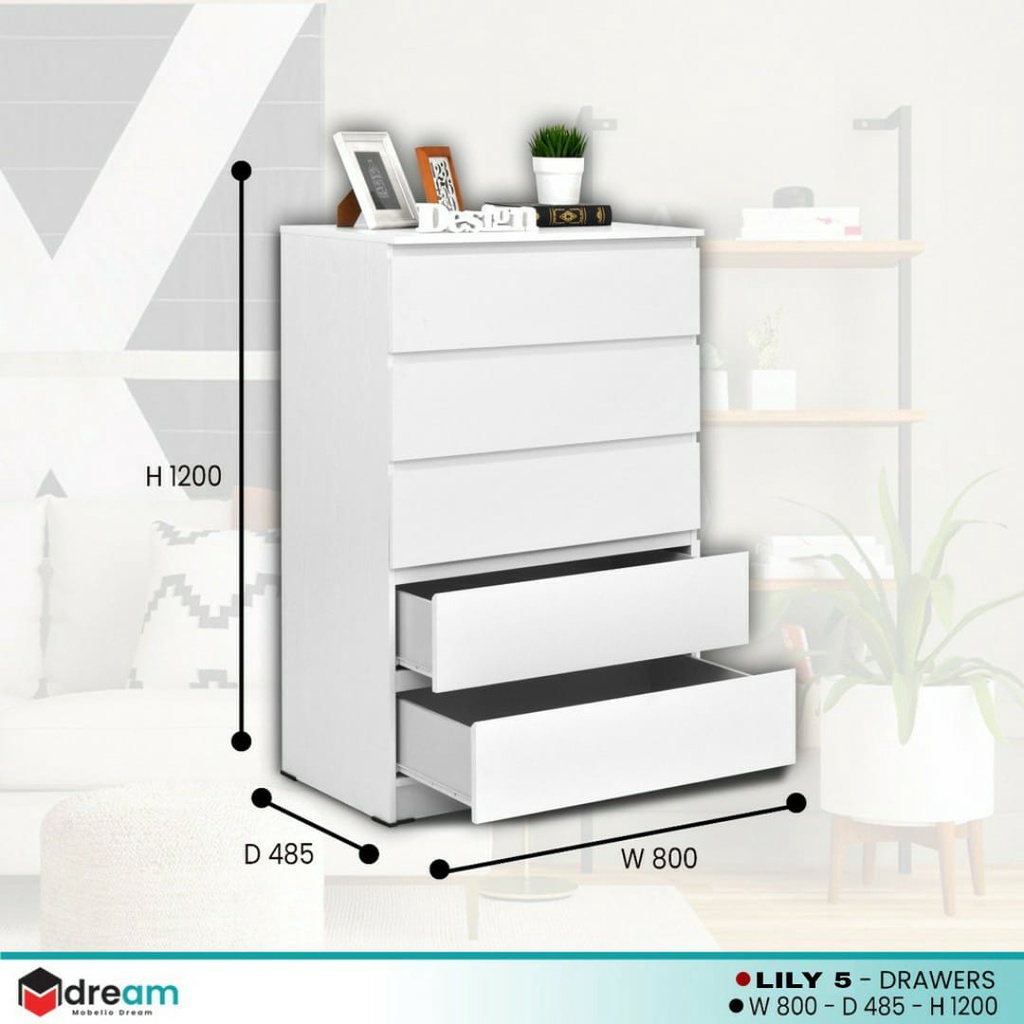 Lemari 3, 4, 5 dan 6 Laci Susun Tingkat Chest Drawer Serbaguna Minimalis Putih - LILY