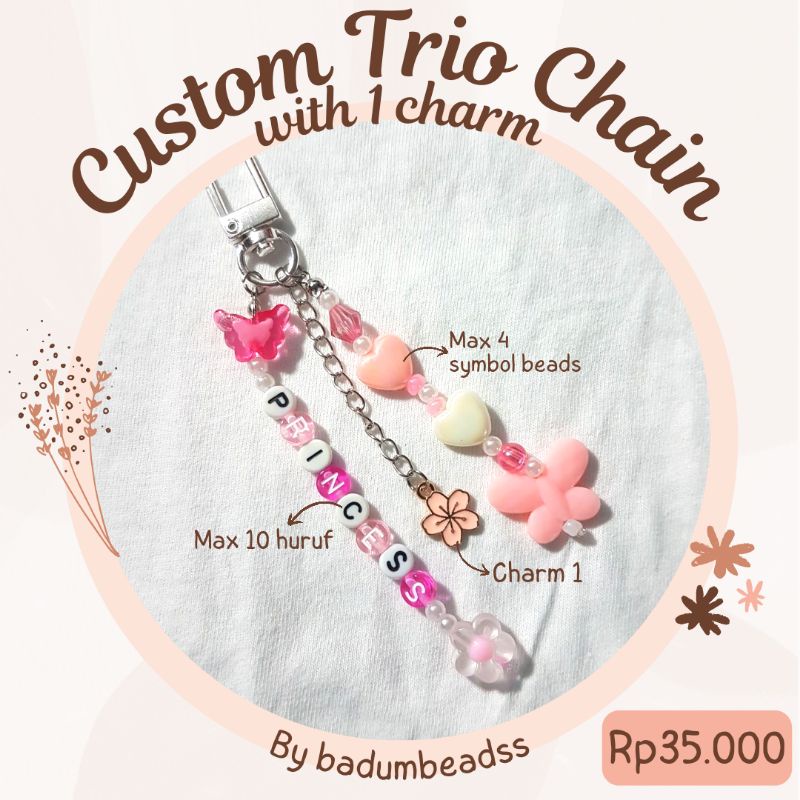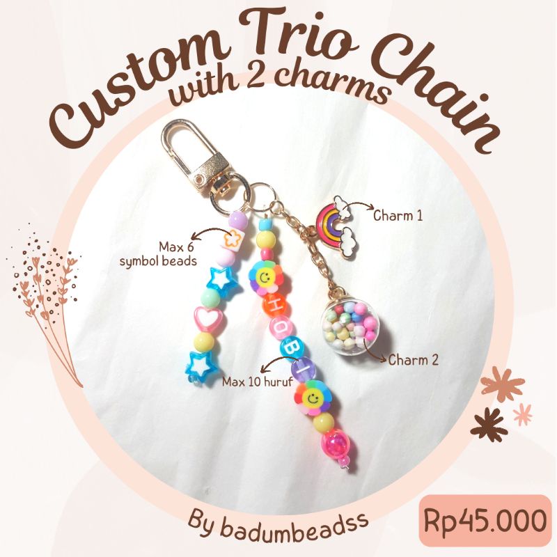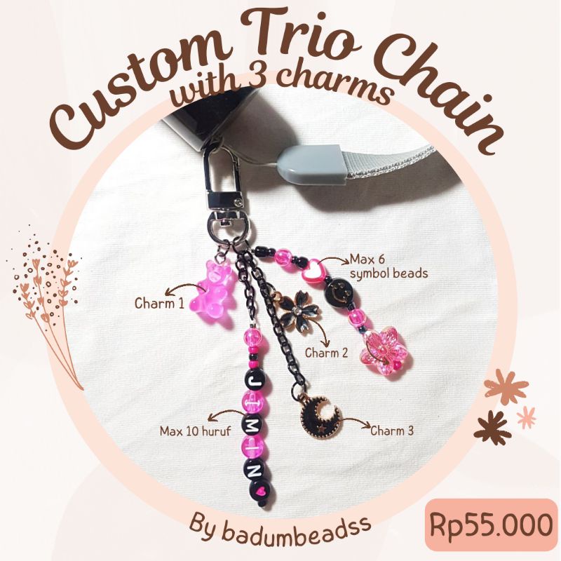 [Custom] Beads Trio Keychain with enamel charm / gantungan kunci manik custom kpop charm BTS TXT Enhypen NCT EXO Stray Kids Twice