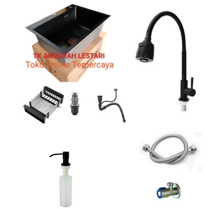 Paket Lengkap Kitchen Sink 5243 BLACK Paket Kran Tarik Stainless Hitam