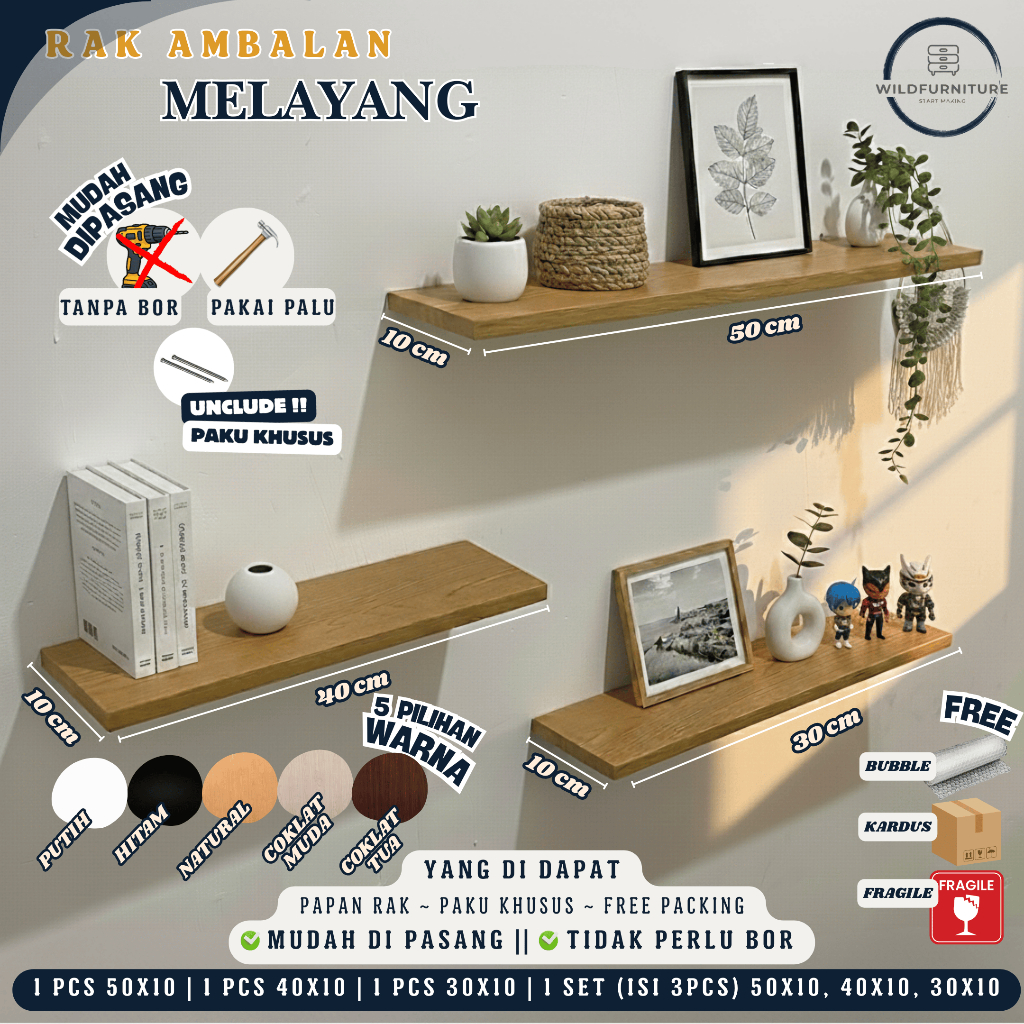 [WILDFURNITURE] TERMURAH RAK AMBALAN DINDING MELAYANG / RAK AMBALAN GANTUNG MURAH / HIASAN TEMPEL DINDING MELAYANG / RAK KAMAR PAJANGAN AESTHETIC / RAK DAPUR / RAK BUMBU / RAK BUKU / RAK GANTUNG SERBAGUNA