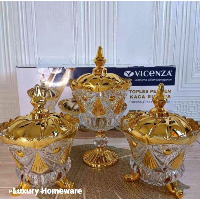 Toples Burung Hantu Kaca Gold Set 3 Pcs