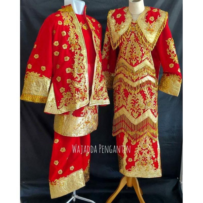 BAJU PENGANTIN MERAH PENGANTIN MINANG BELUDRU LAME BORDIRAN