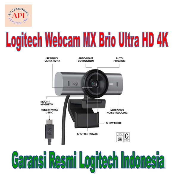 Logitech MX Brio Webcam Streaming UHD 4K,1080p 60FPS, Noise-Cancelling