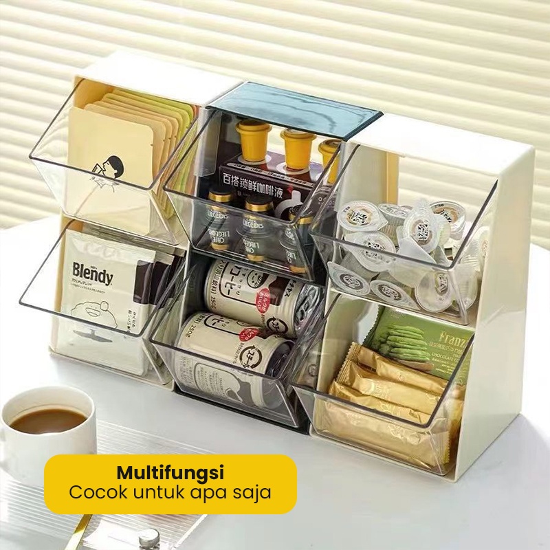 Dejavu Kotak penyimpanan Rak Meja Parfum Transparan Laci Organizer Make Up Skincare Rak Gelas Bumbu Dapur HSB632
