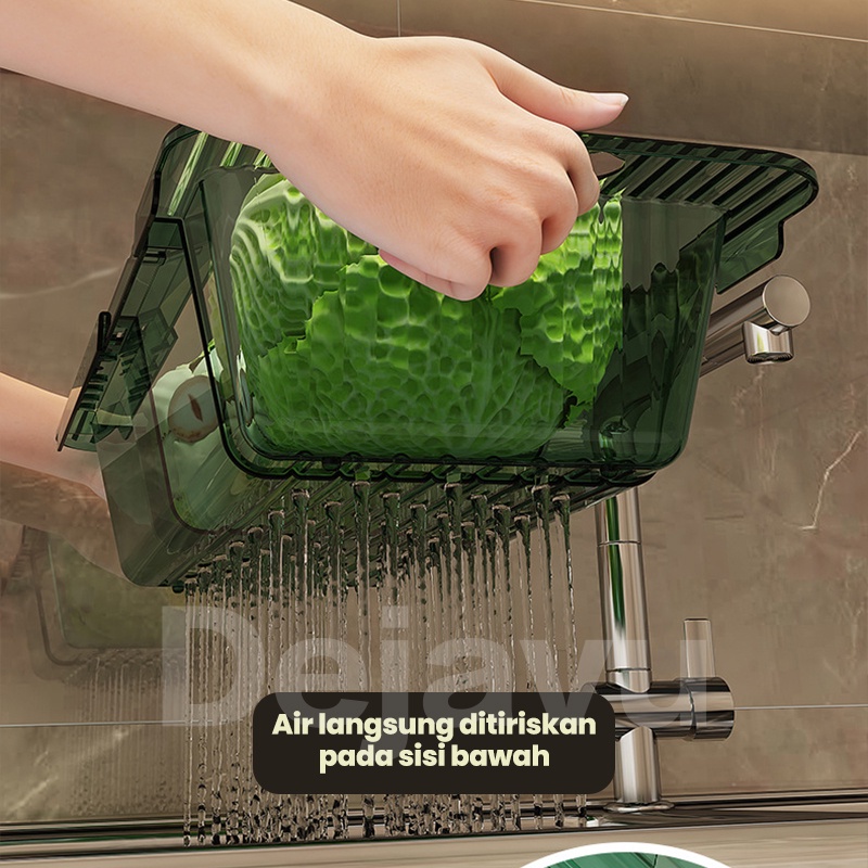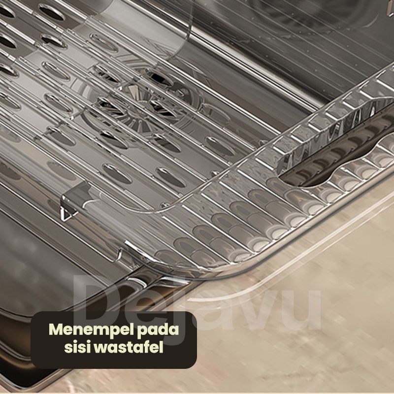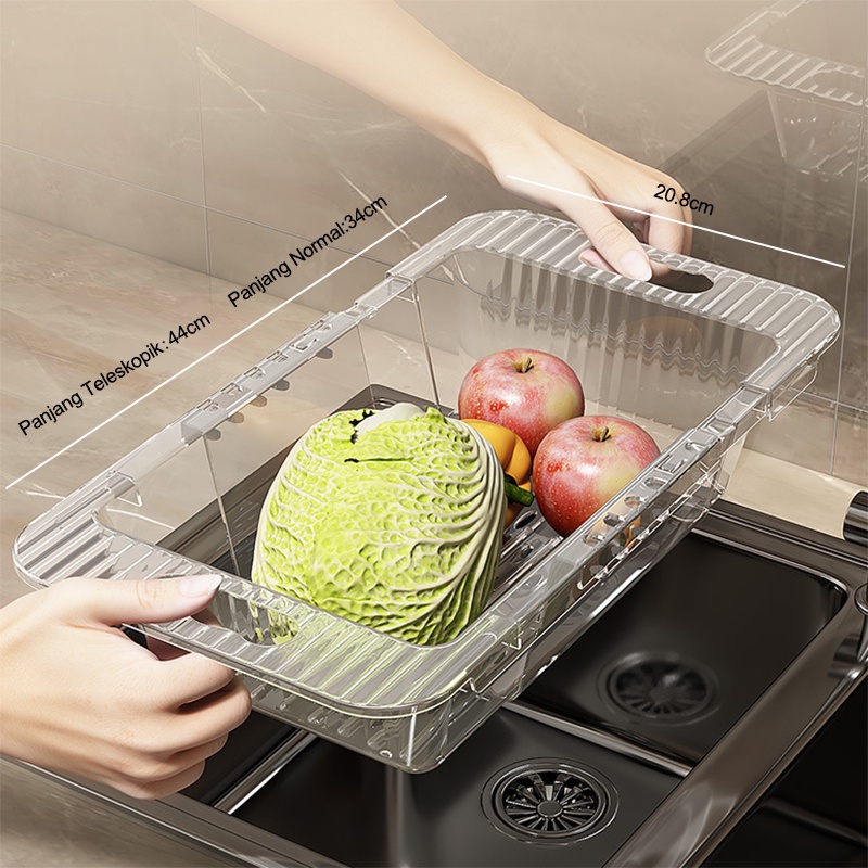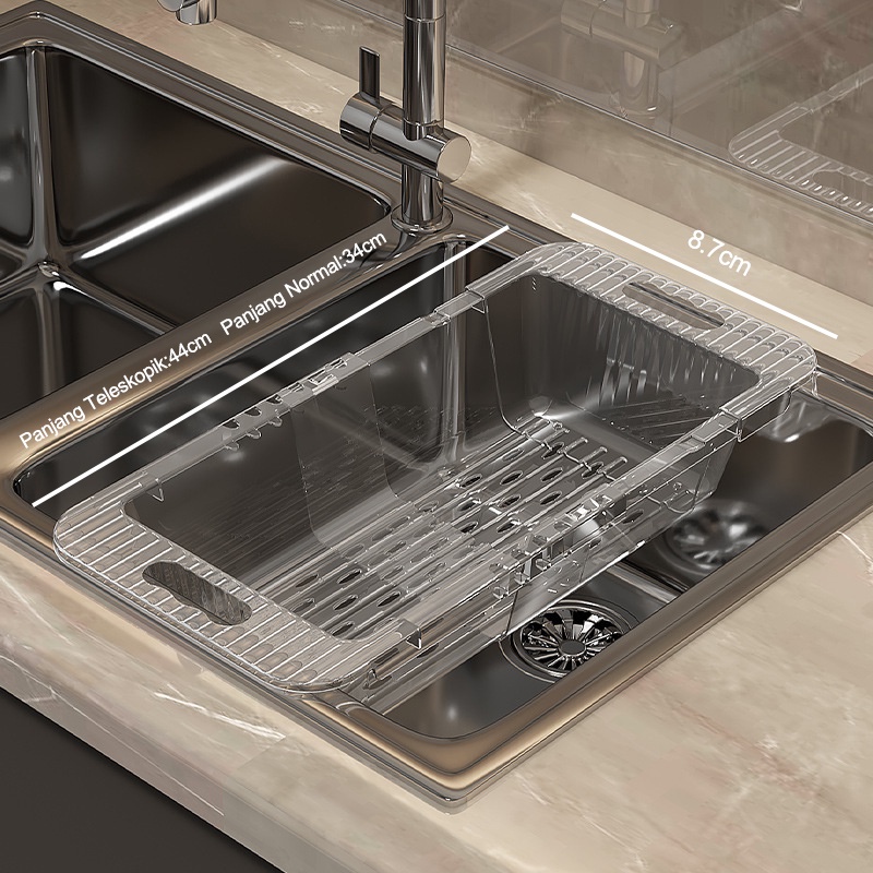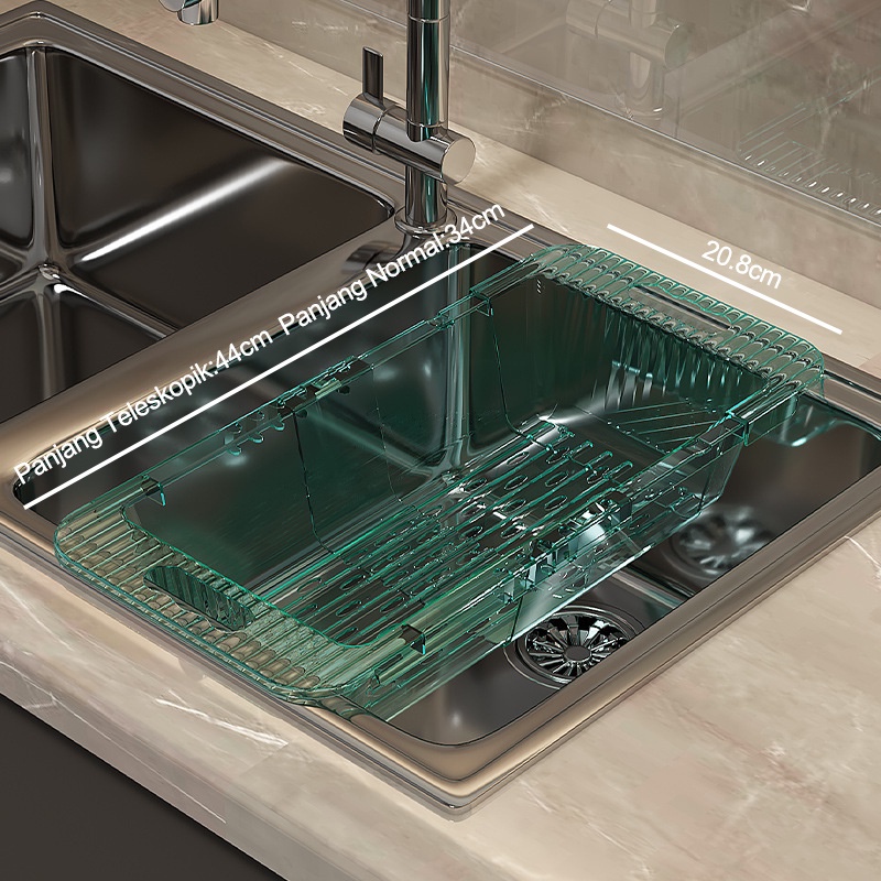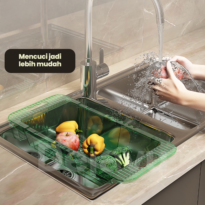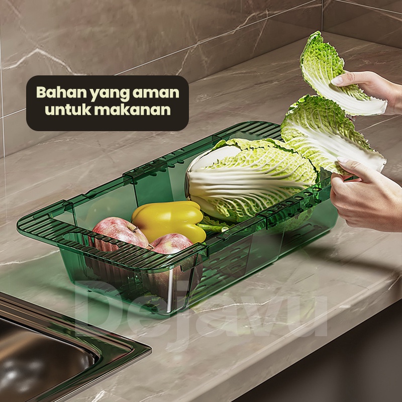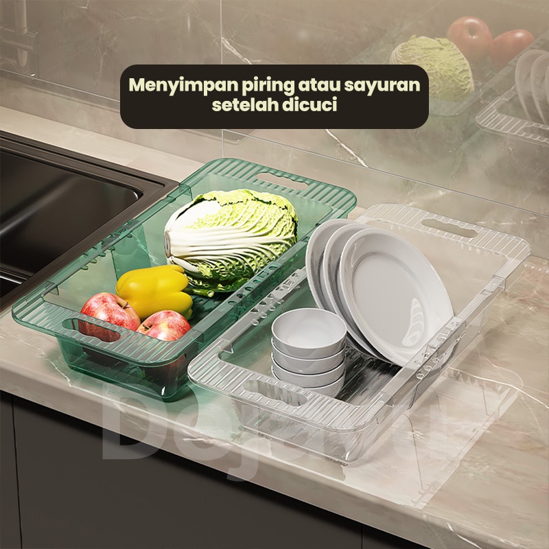 Dejavu Keranjang Wastafel Tirisan Cuci Piring Rak Pengering Sayuran Buah Wadah Saringan Adjustable Drain Basket HSB662