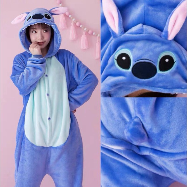 ONESIE KOSTUM PIYAMA STITCH BIRU KIGURUMI DEWASA